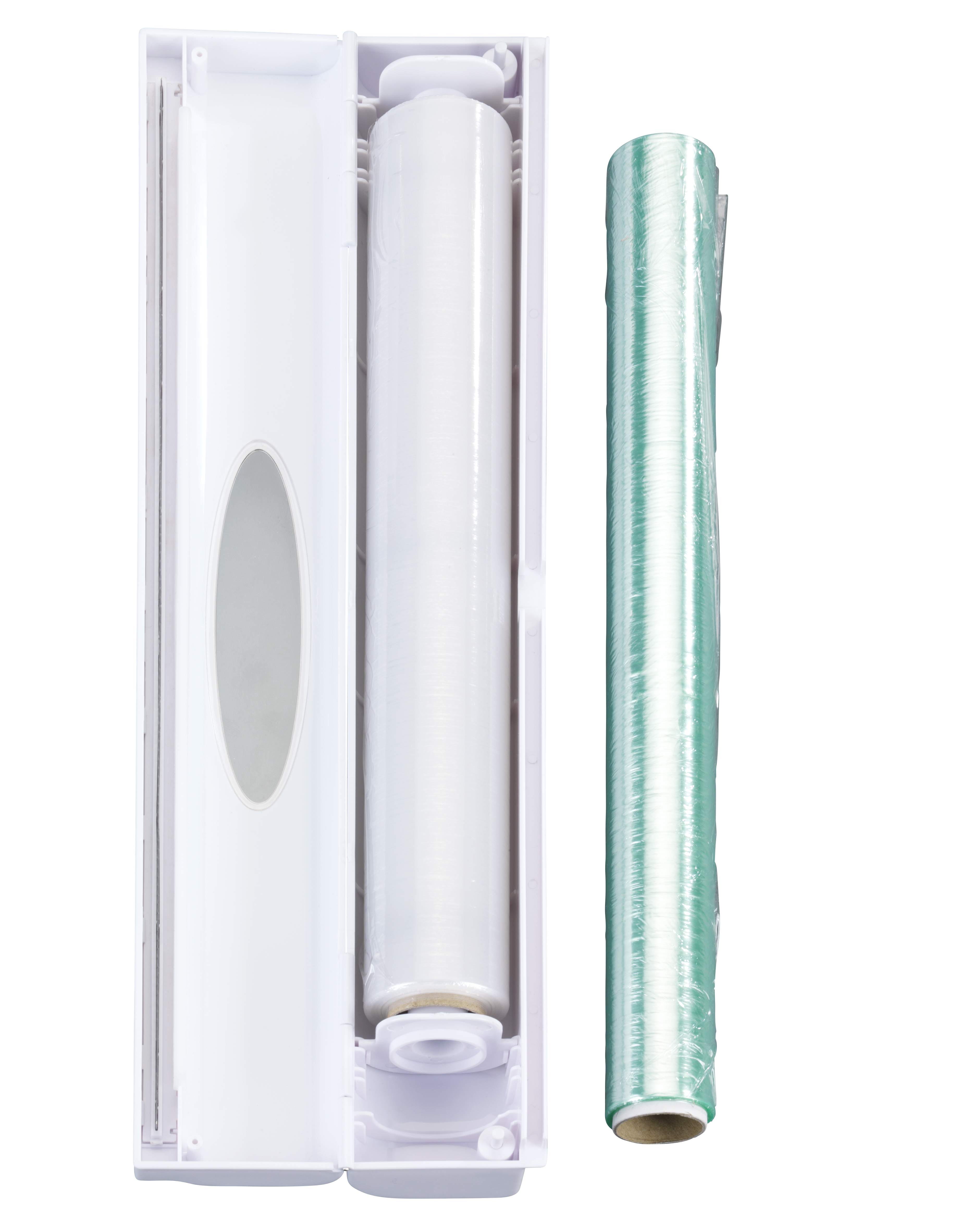 Denne praktiske rulleholder er ideel til opbevaring af aluminiumsfolie og husholdningsfilm med en bredde på op til 33 cm. Den er udstyret med en rustfri, fintandet klinge i rustfrit stål for nem afskæring.