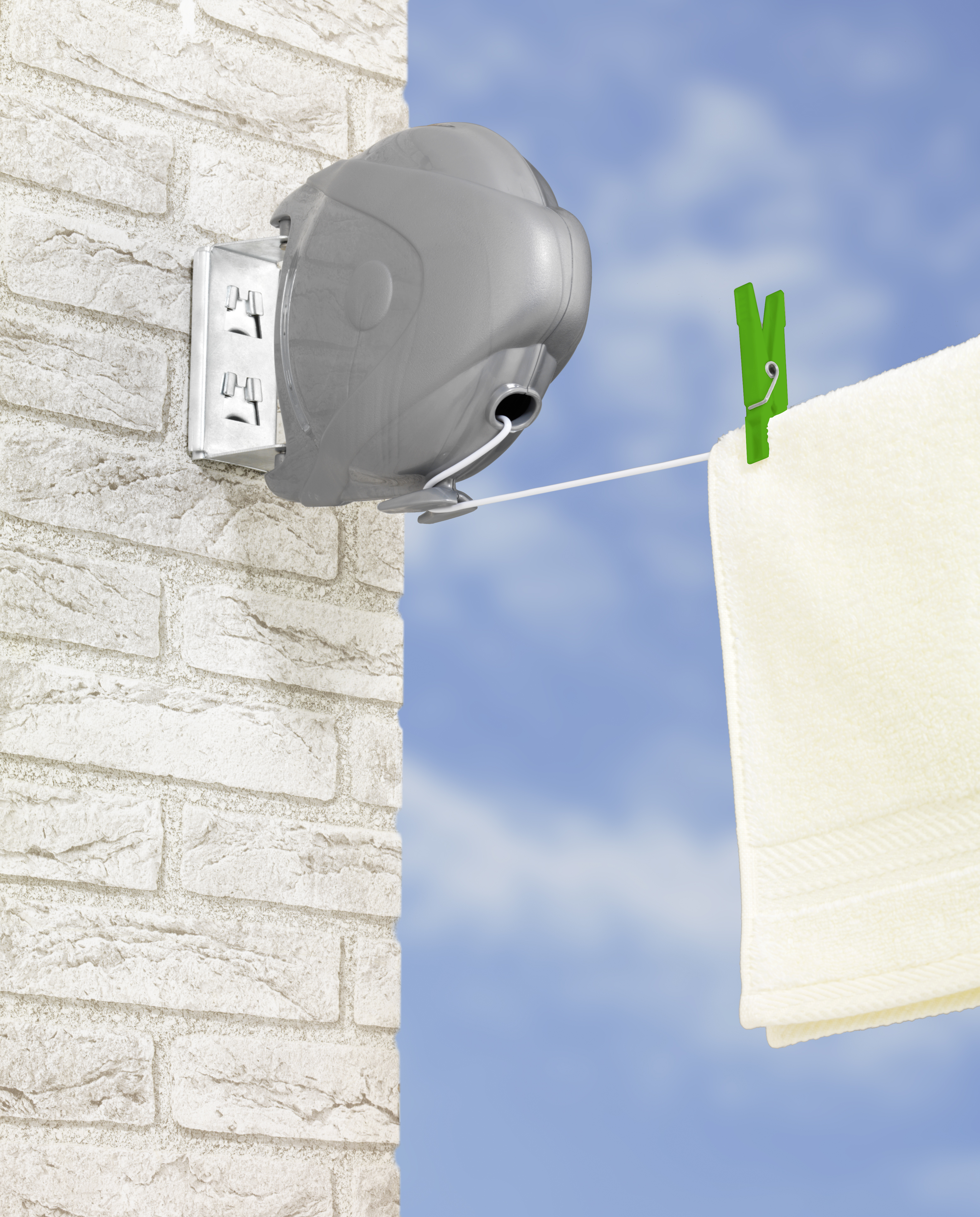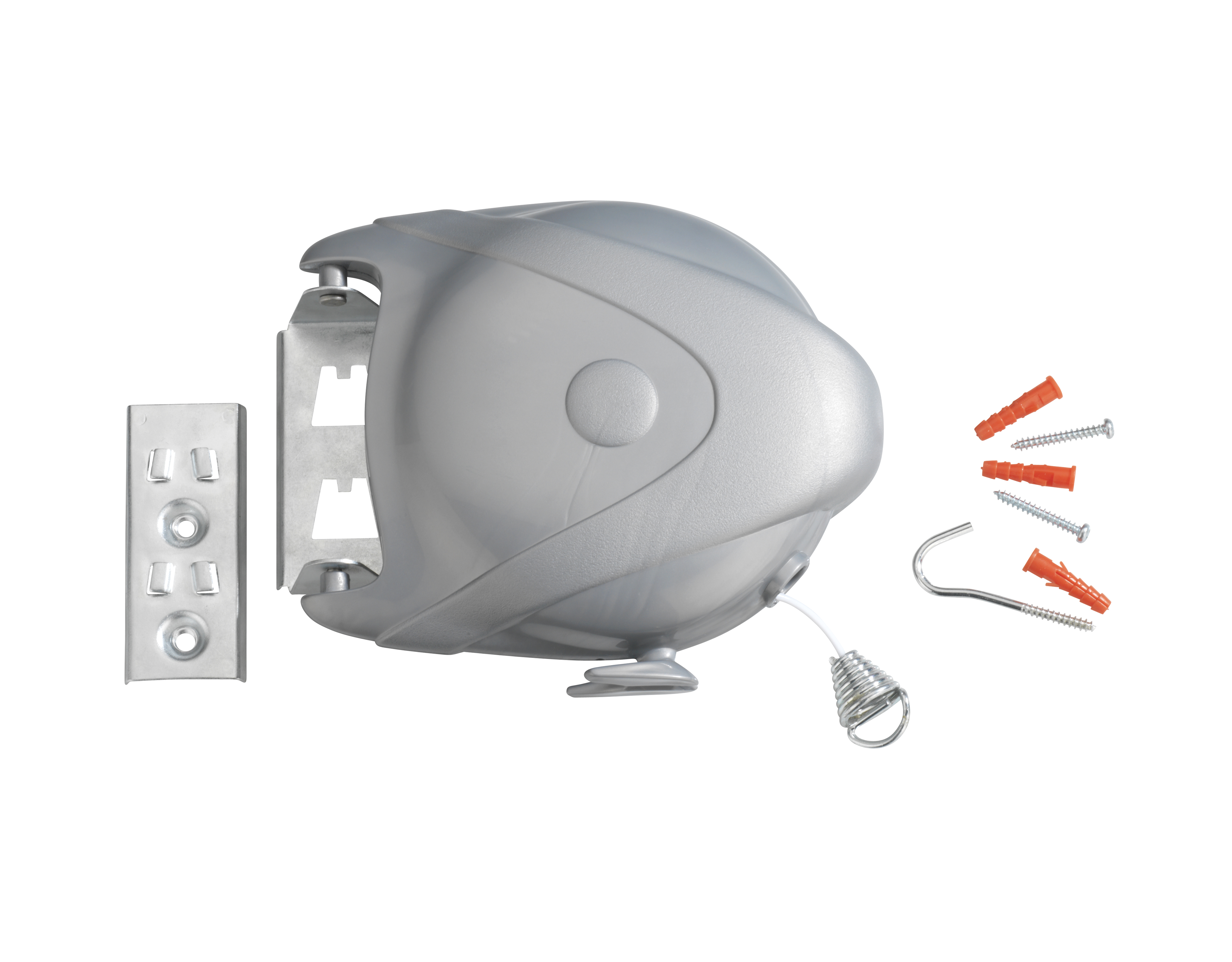 Jumbo udtrækningstørreline tilbyder op til 15 meter tørresnor. Linen kan hurtigt trækkes ud og rulles ind igen takket være det automatiske rullesystem med en tilbagetrækningslås. Tørresnoren er optimal til badeværelset, altanen, terrassen, haven eller kælderen.