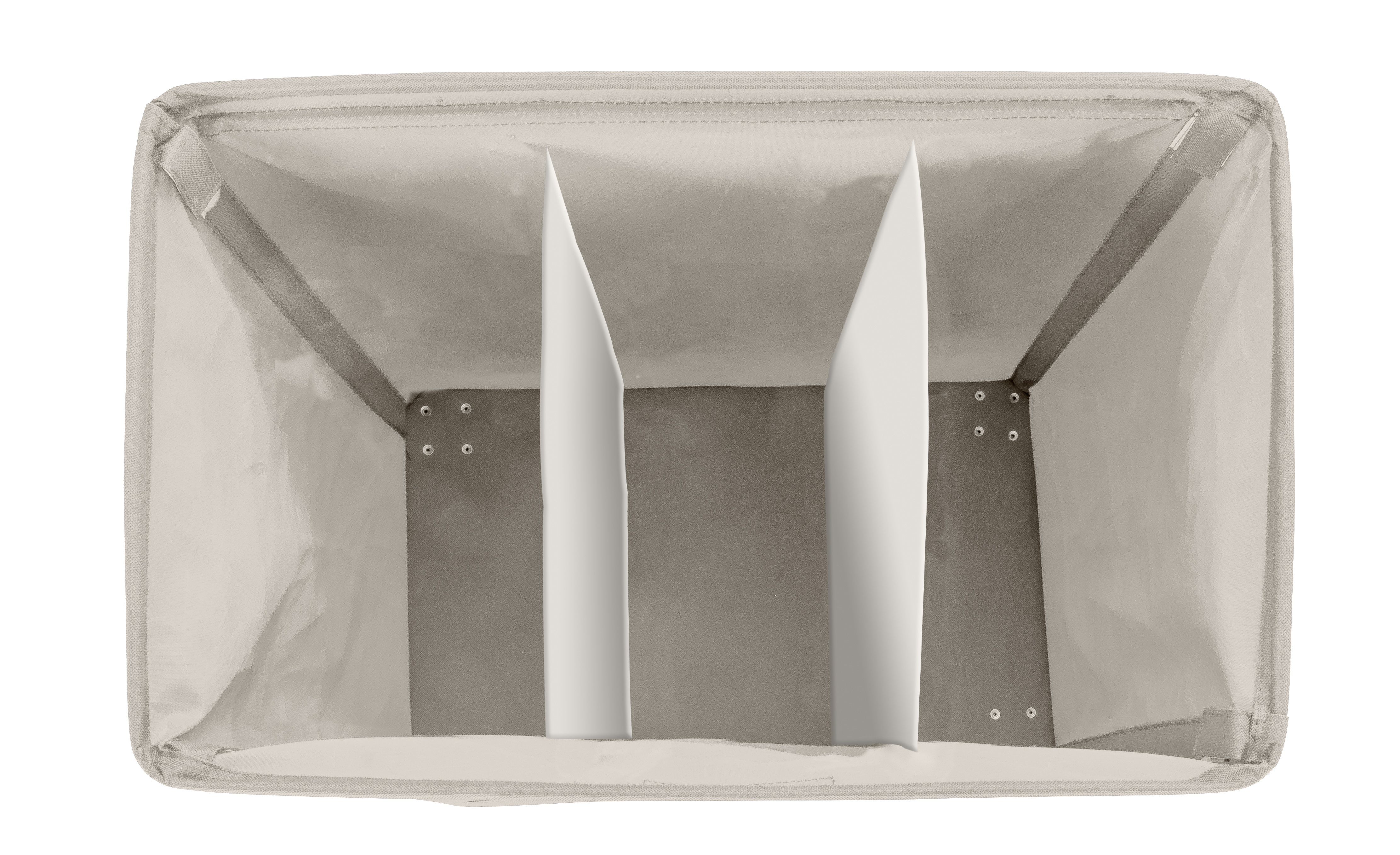 Den elegante vasketøjskurv Trivo i beige imponerer med sit høje kvalitetsudtryk og store rumfang på hele 116 liter. Den rektangulære kurv er lavet af slidstærkt polyester og er udstyret med fire hjul, så den nemt kan flyttes rundt – lige til at skubbe ind i badeværelset, soveværelset eller direkte i vaskerummet. Med sit dekorative tryk er kurven samtidig et æstetisk blikfang. Trivo er et praktisk og dekorativt hjælpemiddel i hjemmet med mange anvendelsesmuligheder. Den har tre separate rum, så vasketøjet kan sorteres efter farve eller temperatur allerede inden vask. Det smarte låg skjuler det beskidte tøj på en elegant måde.