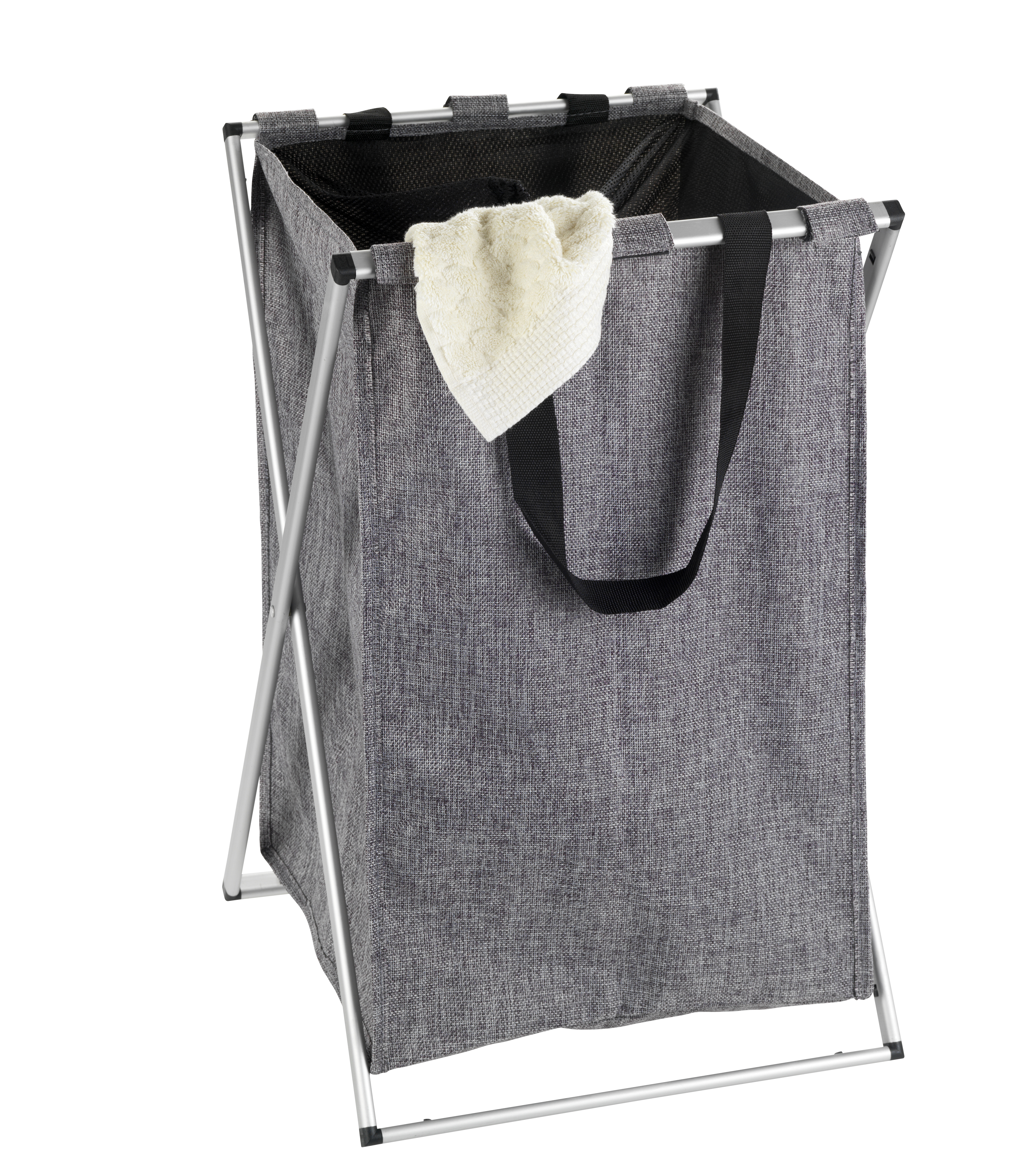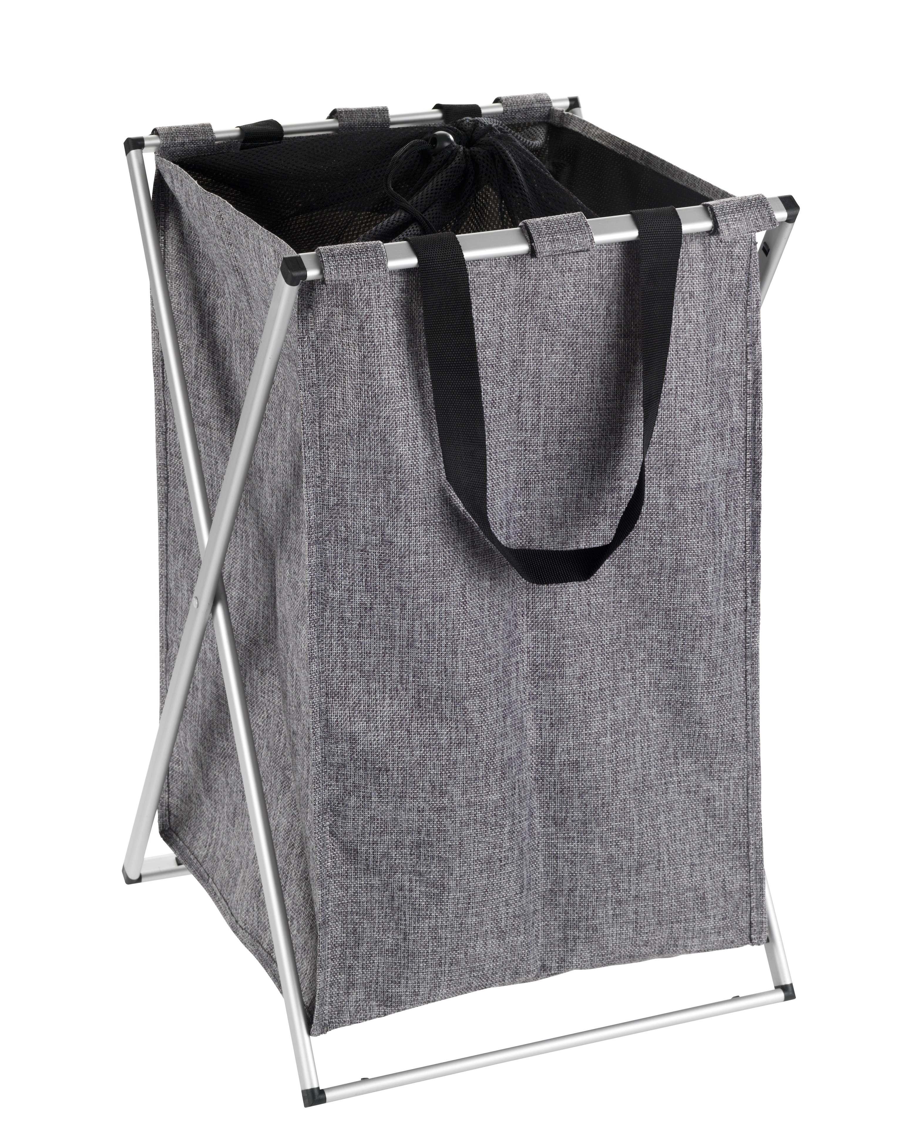 Vasketøjsstativet er i gråt stof og stel af aluminium, og den rummer 52 liter. Den indvendige stofpose er udstyret med bærestropper, så vasketøjet let kan transporteres. Derudover kan beholderen lukkes til ved snørelukning. Når vasketøjsstativet ikke er i brug, kan det foldes sammen og opbevares uden at optage for meget plads.