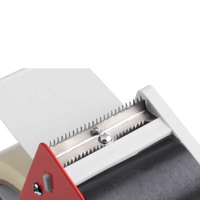 Praktisk tapedispenser, der gør det nemt at lukke pakker og kasser sikkert og pænt, udstyret med integreret zakkemesser så tapen kan skæres direkte, ergonomisk håndtag der giver en behagelig brug, passer til ruller op til 50 mm i bredden og leveres inklusiv en selvklæbende tape.