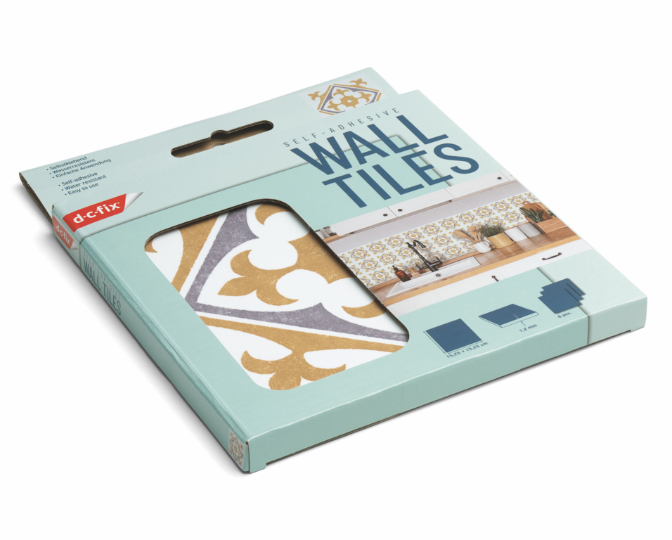 De selvklæbende vægfliser fra D-C-Fix gør det muligt at opdatere dit køkken- eller badeværelsesfliser uden rod, besvær eller omkostninger ved at genflise. Fliserne er lavet af stift vinyl og kan påføres over eksisterende flade fliser af enhver størrelse, uden at fugelinjerne trænger igennem nedefra, eller du kan påføre dem direkte på en pudset væg.
