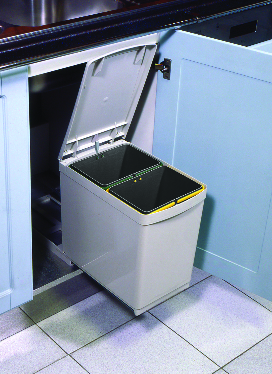 Med sin smarte skinnefunktion glider systemet let ud og ind, så du nemt kan få adgang til affaldsspandene. Et praktisk og stilfuldt system, der hjælper med at holde dit køkken eller opbevaringsområde organiseret og effektivt.