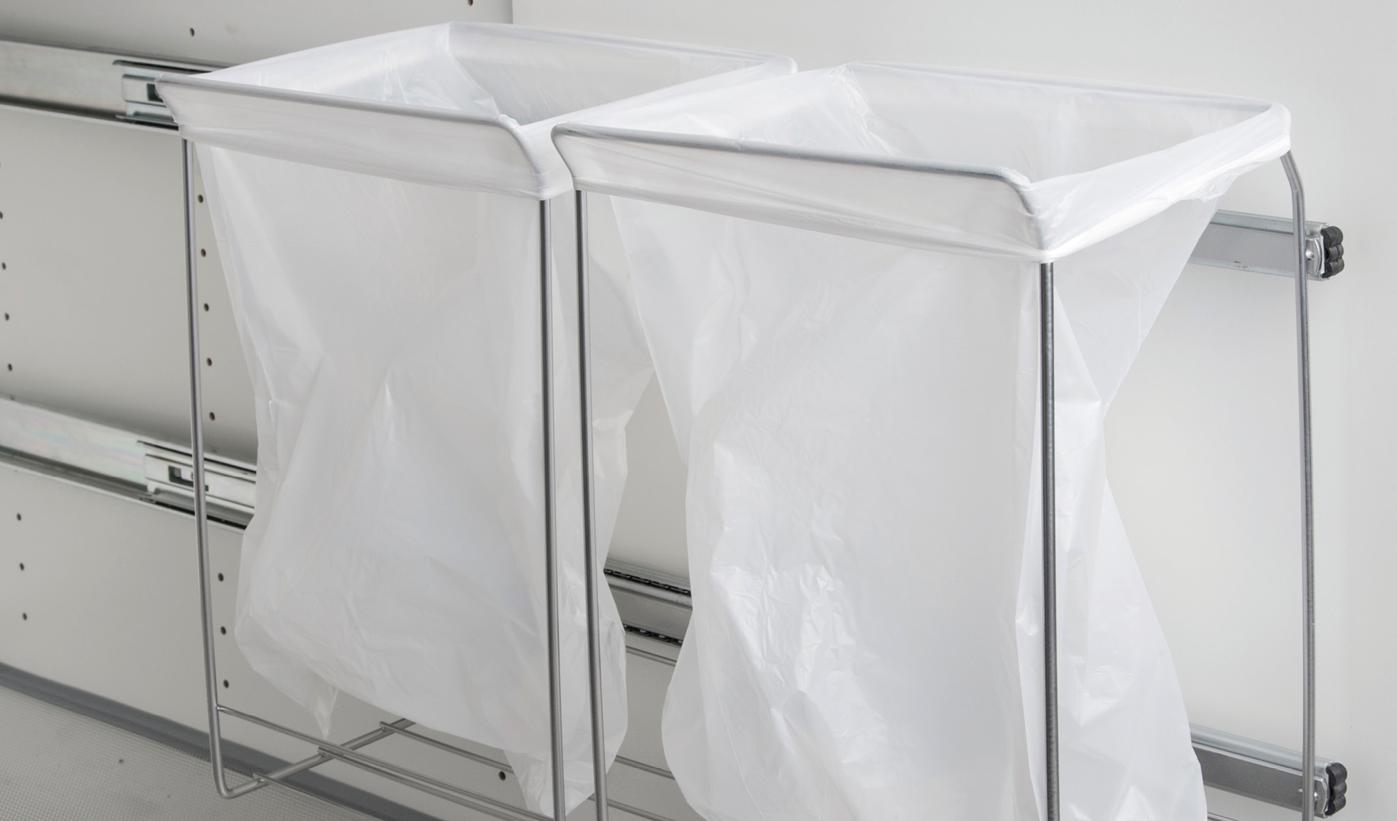 Stativet kan holde to affaldsposer og er skruemonteret for maksimal stabilitet og holdbarhed. En enkel og funktionel måde at holde dit køkken eller opbevaringsområde ryddeligt og organiseret.