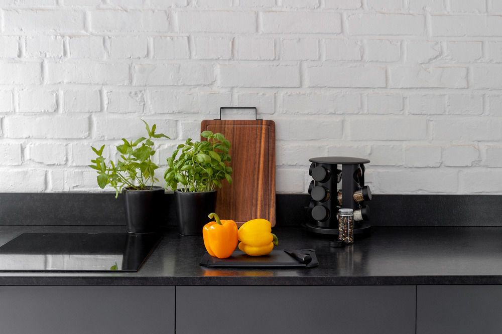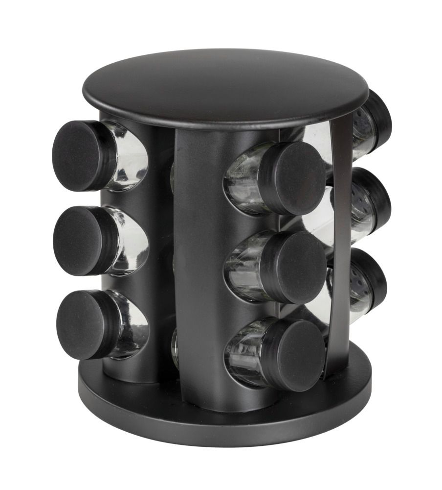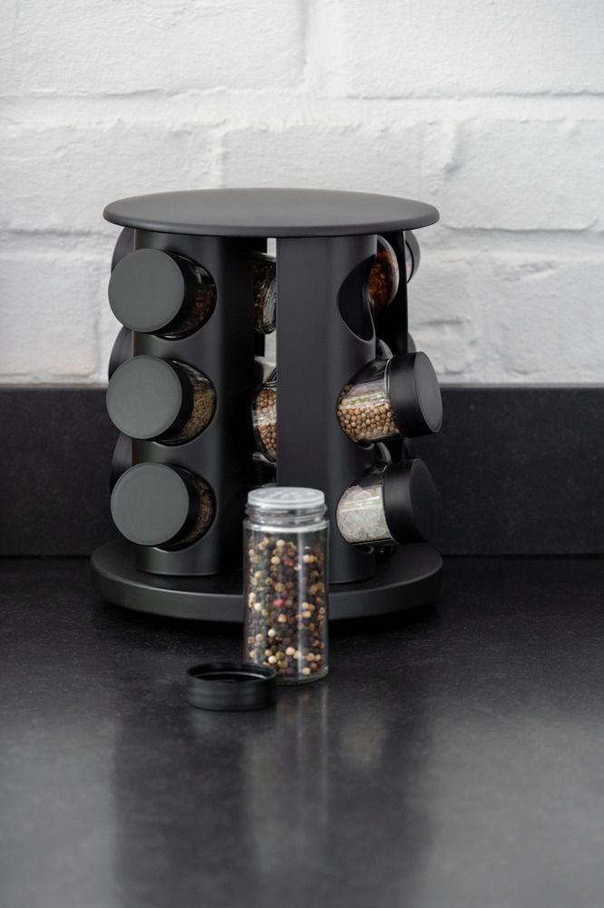 Karusellen er fremstillet af pulverlakeret metal, mens lågene er lavet af plast. Det er en del af Black Outdoor Kitchen serien. De samlede dimensioner er 18,5 cm i diameter og 21,5 cm i højden, og hvert glas rummer 100 ml. Dette system gør det nemt at holde styr på dine krydderier, samtidig med at det tilføjer et stilfuldt element til dit udendørs køkken.