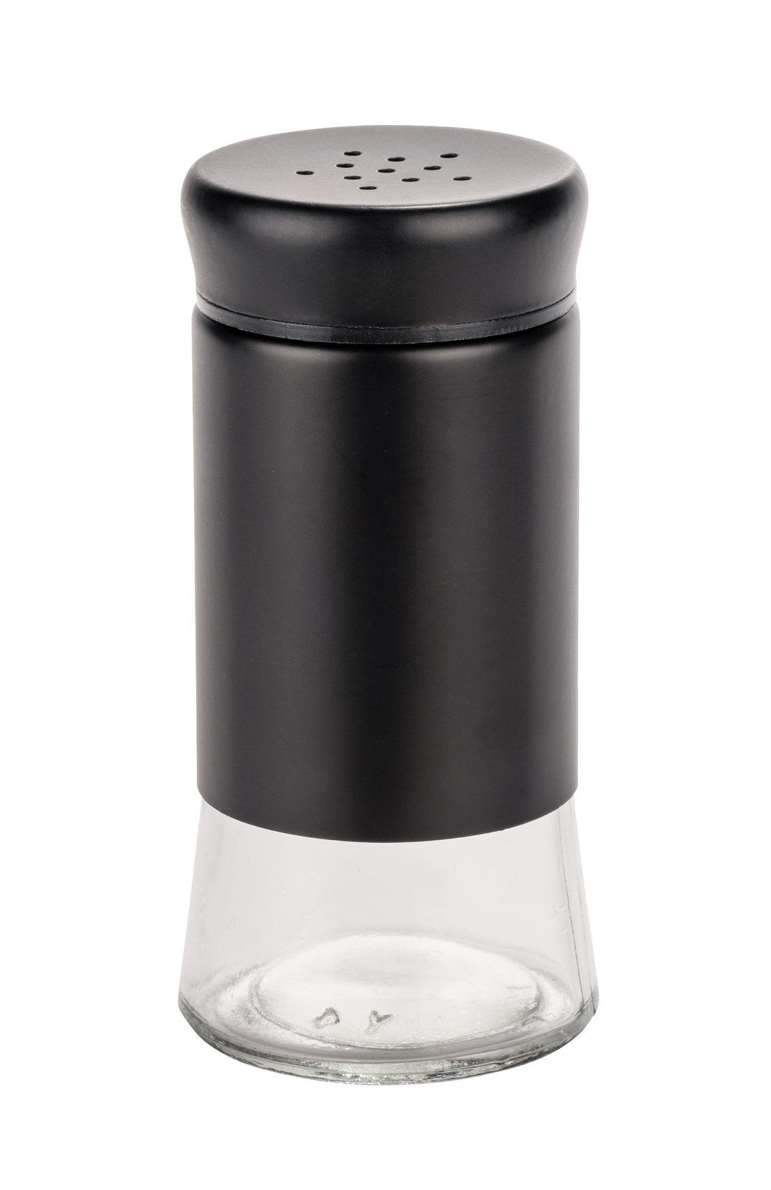 Det sorte låg er fremstillet af plast og har huller, der gør det nemt at dosere krydderierne. Kombinationen af det gennemsigtige glas og den matte sorte finish gør, at krydderirysteren passer perfekt ind i ethvert udekøkken.