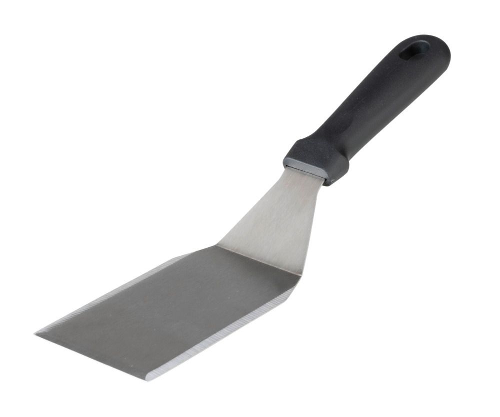Plancha-spatlen er ideel til at vende og servere mad. Den er også velegnet til brug på grill og pande. Spatlen er fremstillet af rustfrit stål med et håndtag i sort plastik, hvilket giver et stilrent udseende og godt greb.