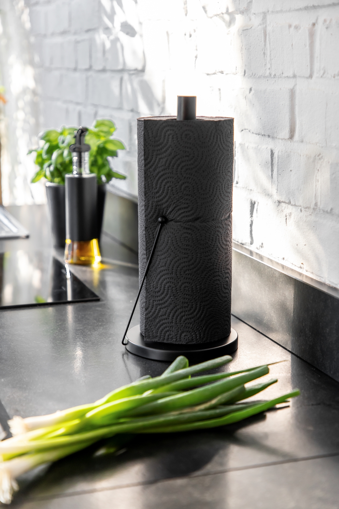 Denne praktiske køkkenhjælper kombinerer æstetik med funktionalitet. Den stabile konstruktion sikrer, at køkkenrullen forbliver på plads takket være en smart stopper, der giver nem adgang. Den fritstående holder er ideel til dig, der har begrænset plads til vægmontering, og den kan placeres hvor som helst, det passer dig.