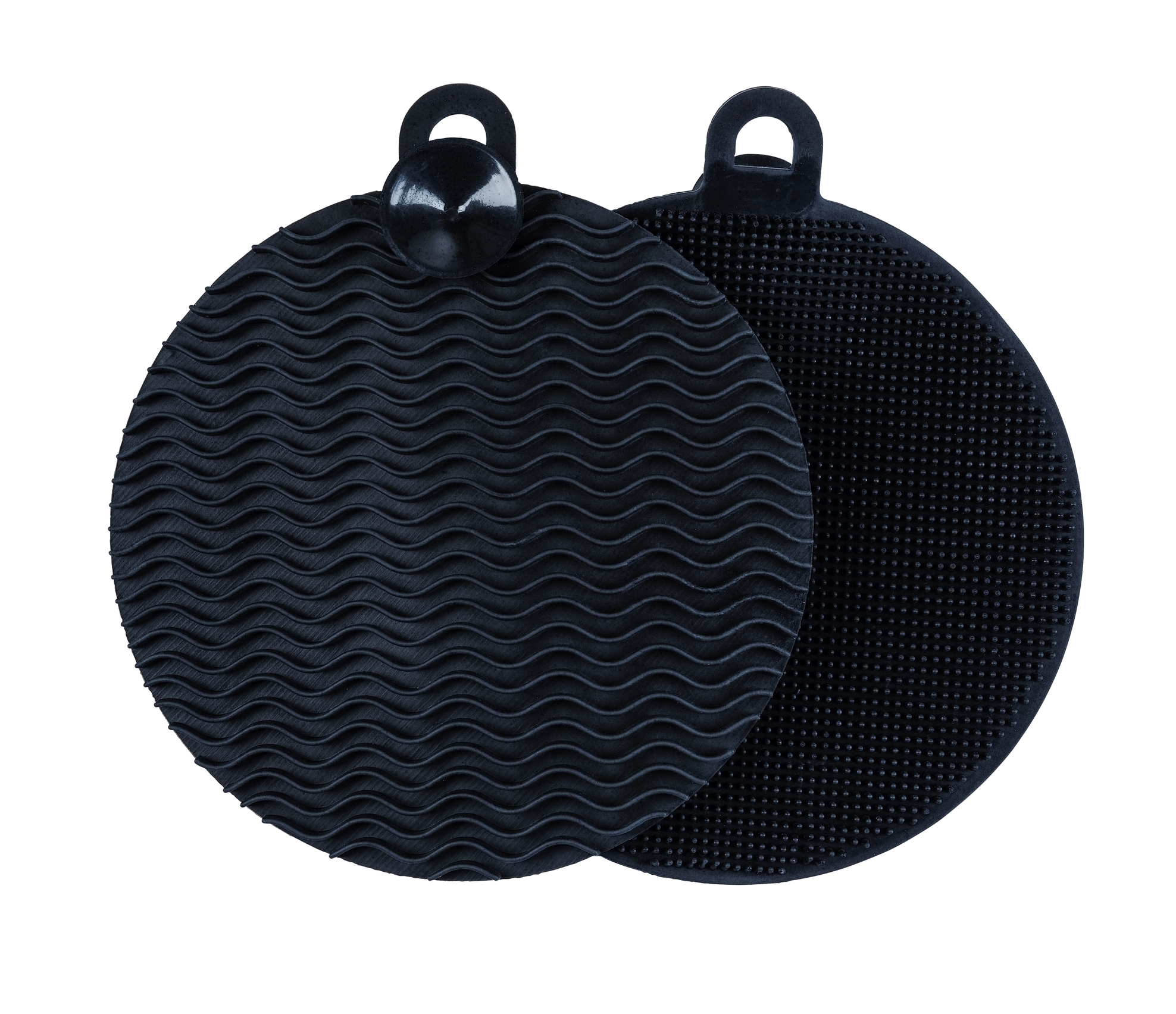 Forbedr dit udekøkken med de stilfulde sorte rengøringssvampe, der kommer i et praktisk rundt design. Disse svampe leveres i sæt med to, fremstillet af højkvalitets silikone, der forhindrer bakterievækst.