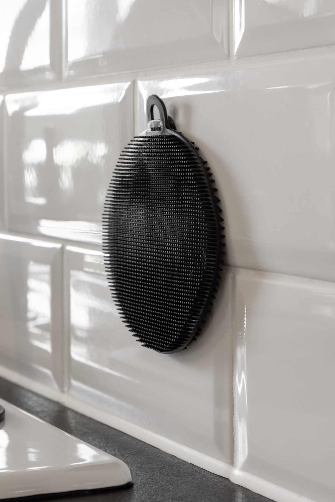 De runde rengøringssvampe har to forskellige overflader til alsidig brug. Den bløde top med fine knopper er ideel til skånsom rengøring, mens den mere robuste bagside effektivt fjerner genstridige madrester. Når svampene ikke er i brug, kan de nemt fastgøres til væggen med de integrerede sugekopper. Desuden kan svampene rengøres i opvaskemaskinen for ekstra bekvemmelighed.