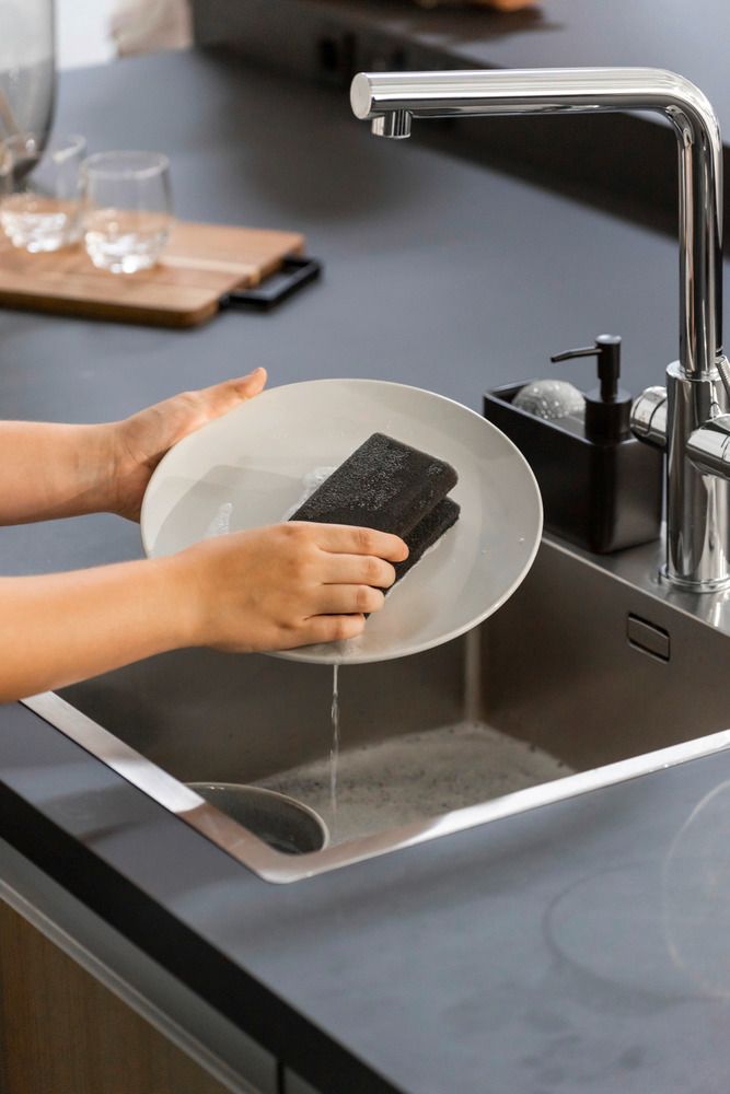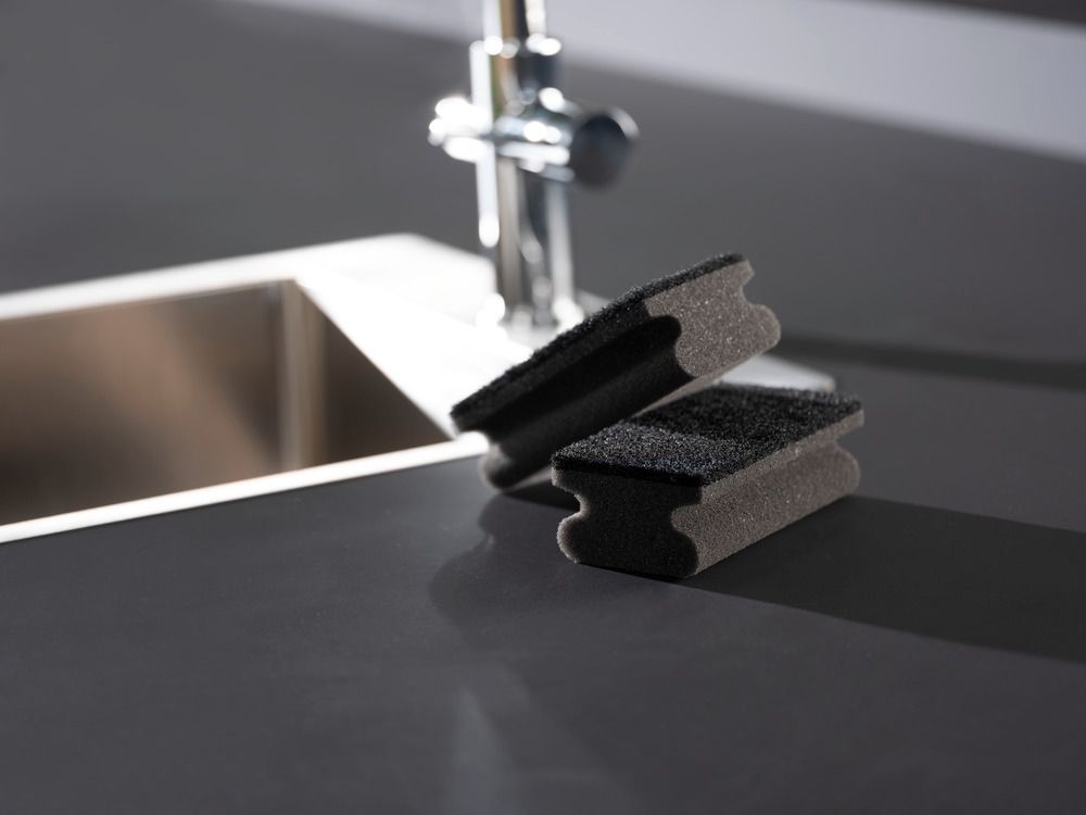 Skrubberen har både grove og bløde sider, hvilket gør den perfekt til rengøring. Den er effektiv til kraftig rengøring af grillrist, pander og gryder. Det tiltalende design med en subtil sort farveskala giver et elegant udseende.