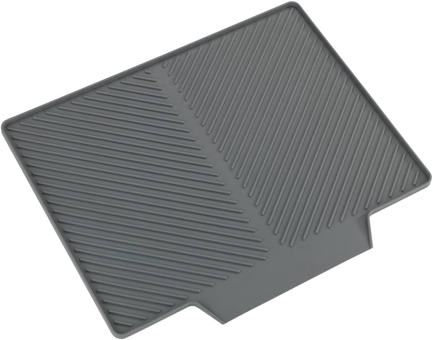 Denne praktiske opvaskemåtte i moderne grå plast er ideel til placering og tørring af glas og service. Den har en rillede struktur og skrånende overflade, som sikrer optimal vandafledning. Måtten er nem at rengøre og tåler opvaskemaskine. Den måler 34 cm i bredden, 3 cm i højden og 40 cm i dybden.