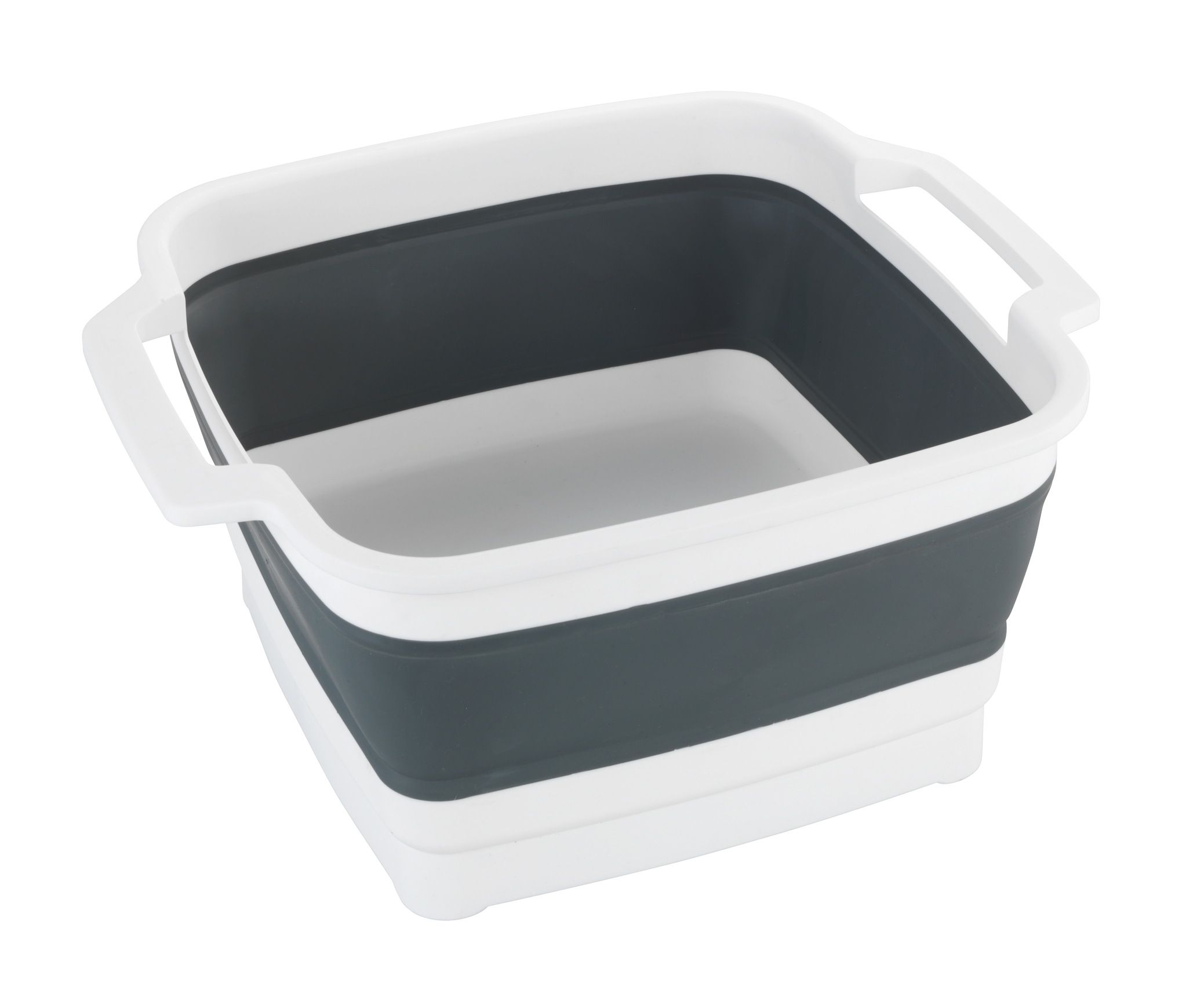 Denne foldbare opvaskebalje i robust grå/hvid plast er ideel til både hjemmebrug og som en praktisk løsning til camping. Den kan nemt opbevares pladsbesparende med en højde på kun 7 cm, når den er foldet sammen. Baljen har en integreret afløbsprop og bærehåndtag, som gør den nem at bruge og transportere. Udfoldede mål er 39 cm i bredden, 18 cm i højden og 32,5 cm i dybden.