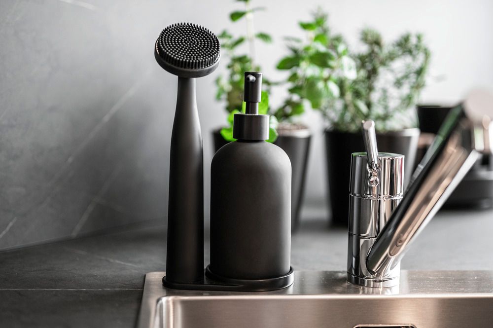 Dette pladsbesparende opvaskesæt bidrager til mere orden og renlighed i dit køkken. Sættet inkluderer en dispenser til opvaskemiddel i glas, en opvaskebørste og en holder i polyresin. Den plastikopvaskebørste er hygiejnisk og skånsom mod overflader, hvilket sikrer effektiv rengøring uden at ridse.