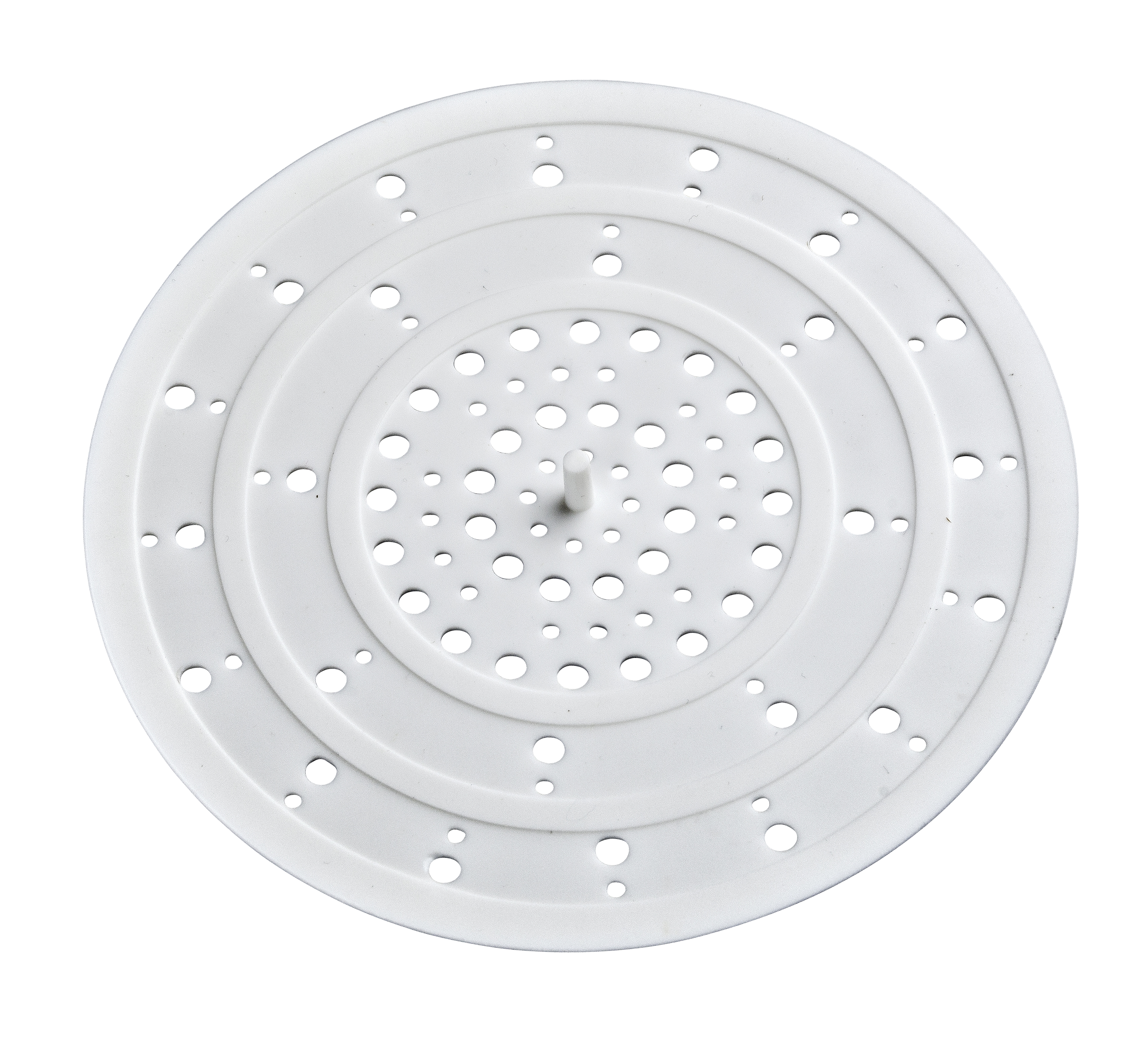 Dette praktiske afløbsfilter er nemt at placere direkte over afløbet i køkkenet eller badeværelset for effektivt at holde afløbet rent og fri for rester. Det er fremstillet af højkvalitets silikone i hvid og har målene Ø 12 cm i bredden og 0,3 cm i højden.