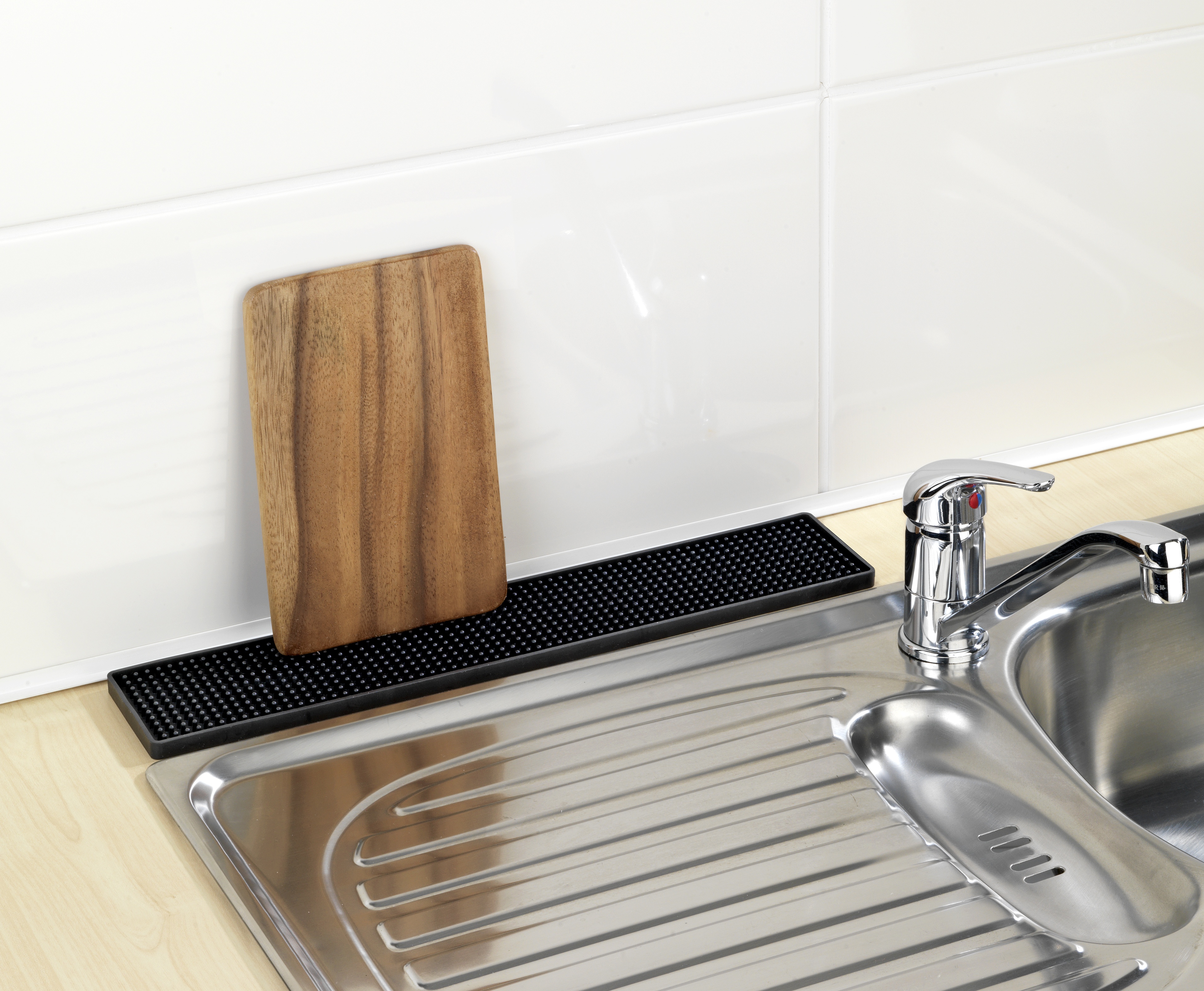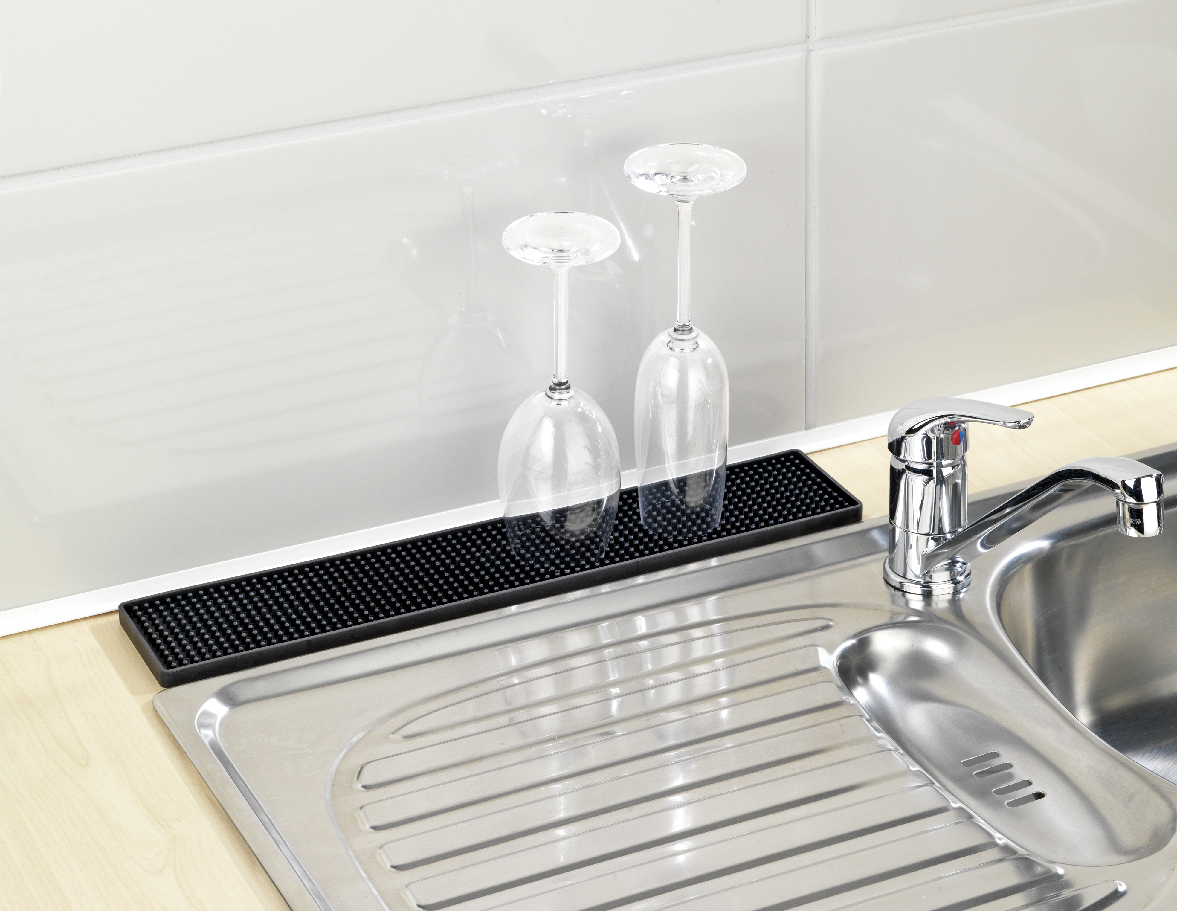 Denne afdrypningsmåtte til vaskens afløbsområde beskytter mod ridser og er skånsom mod glas og service. Den har et højkvalitets udseende og sikrer optimal vandafledning.