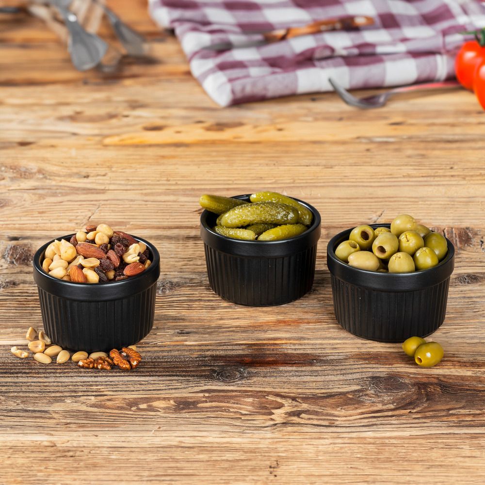 De er en del af BLACK OUTDOOR KITCHEN serien. Hver skål har dimensionerne 8,5 cm i diameter og 5,5 cm i højden, hvilket gør dem både funktionelle og æstetiske til enhver lejlighed.