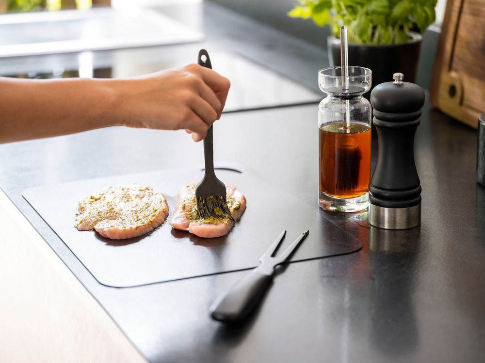 Dette sæt indeholder en tætningsprop og en silikonebørste, hvilket giver fleksible anvendelsesmuligheder til både grilling og madlavning. Den robuste glaskontainer har et elegant udseende og rummer 290 ml.