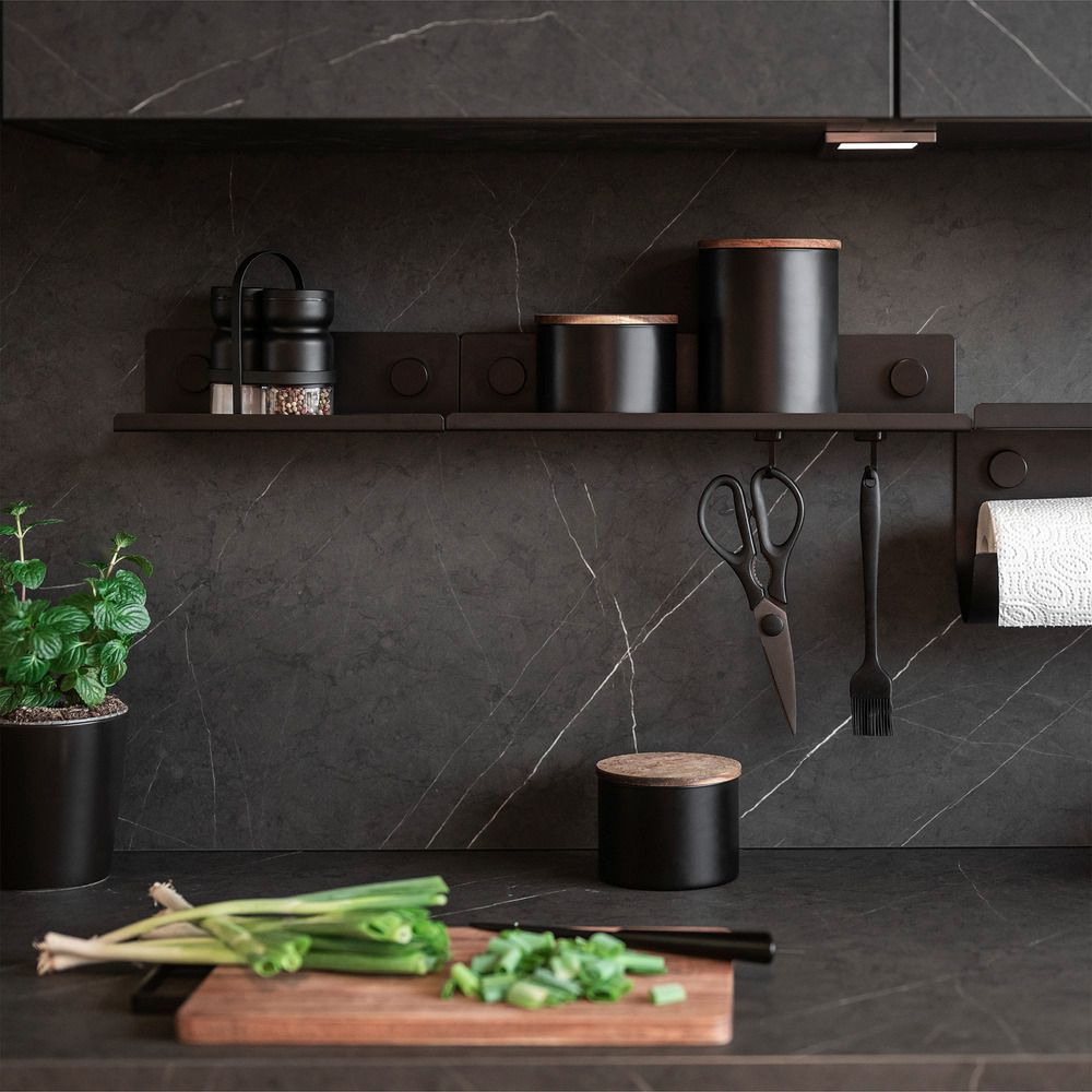 Den højkvalitets opbevaringsbeholder har en kapacitet på 1,0 liter og er fremstillet af robust borosilikatglas i sort. Låget er lavet af FSC®-certificeret akacietræ, hvilket tilføjer et stilfuldt element.