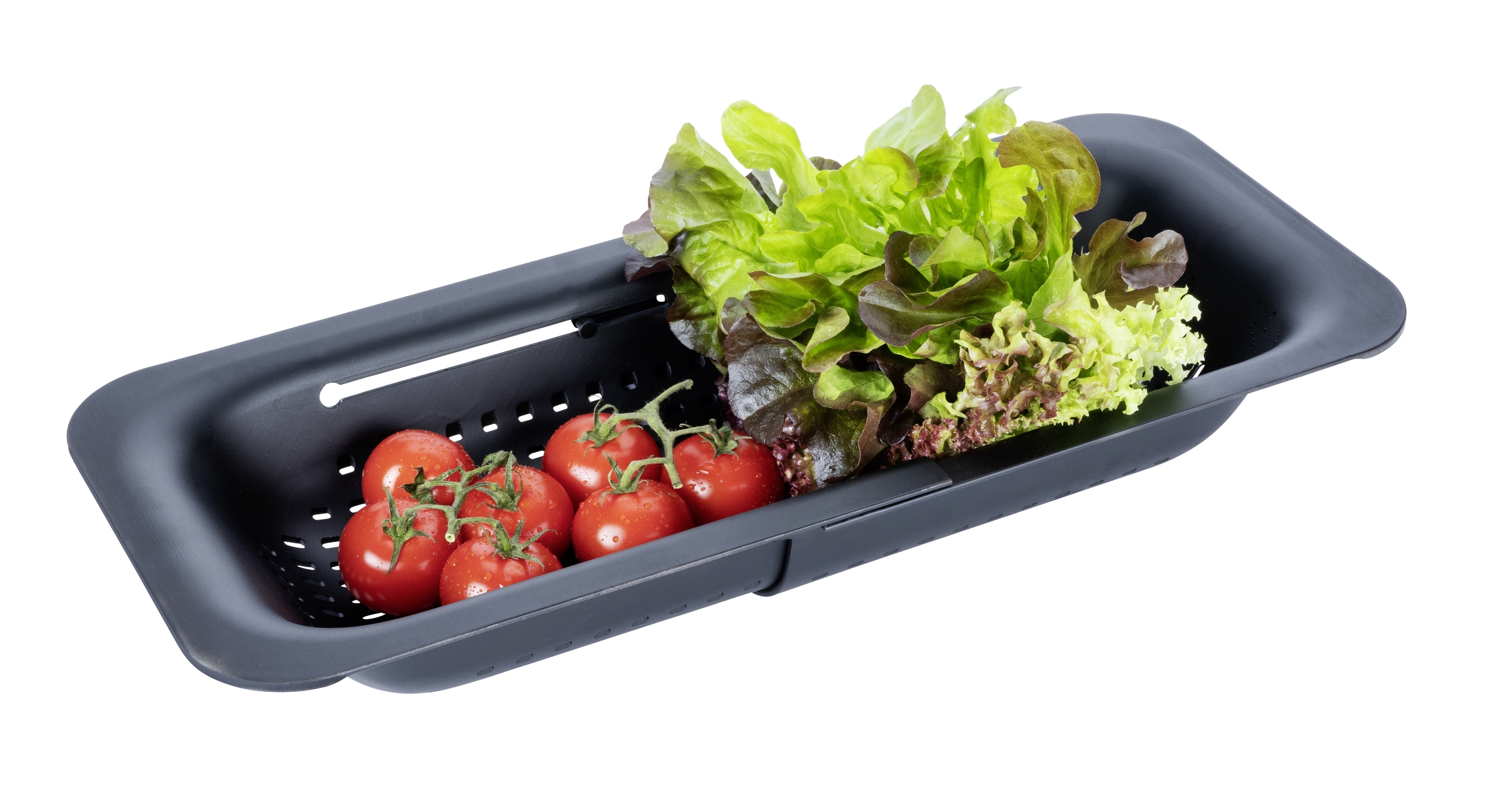 Efter vask kan maden forblive i sigten, så den kan dryppe af, indtil du er klar til at bruge den igen. Køkkenhjælperen er fremstillet af plast af høj kvalitet, og det matte sorte finish samt det enkle design gør, at den passer perfekt ind i dit eksisterende udekøkken.