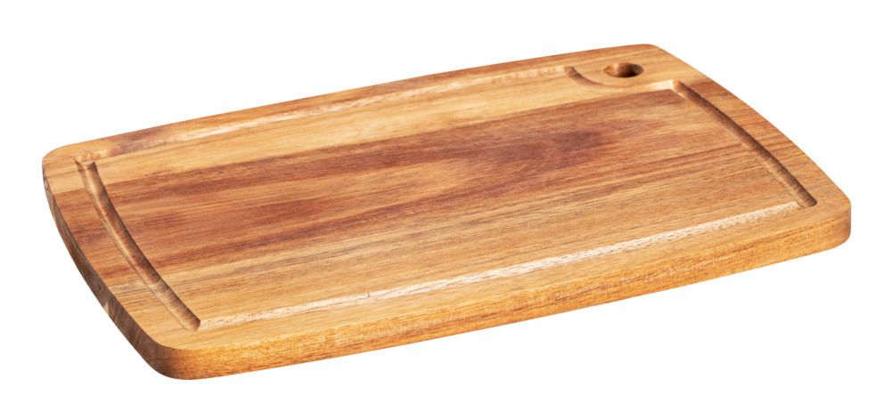 Det bæredygtige skærebræt er fremstillet af FSC®-certificeret akacietræ og har en praktisk saftkanal, der opsamler enhver væske, der måtte komme til. Brættet har et hul til pladsbesparende ophængning og en knivvenlig skæreflade, der gør det ideelt til både kød og grøntsager.