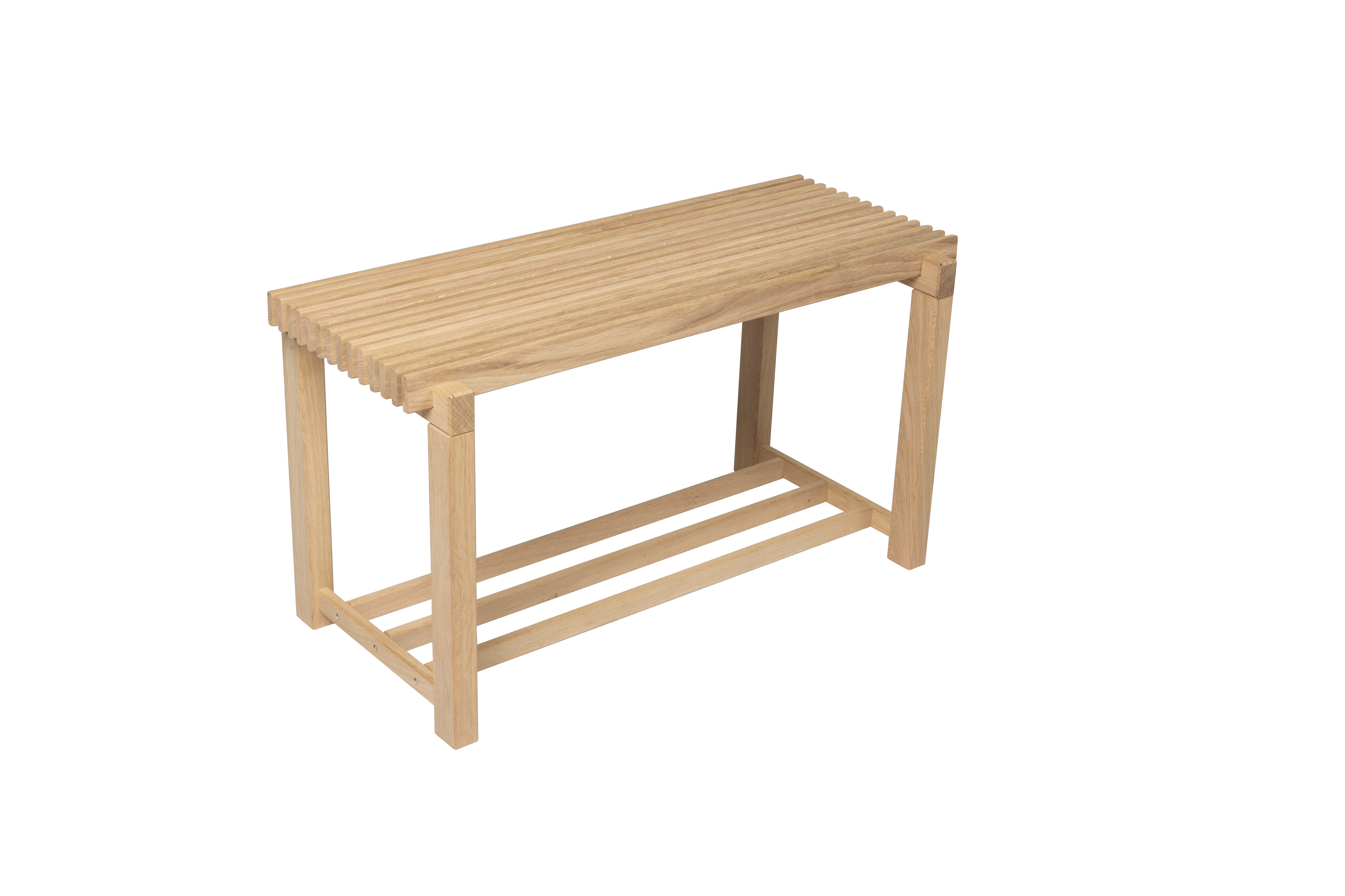 Lastein bænk er en klassisk bænk, der med sine lige linjer og kantede look passer ind i det moderne hjem. Stellet af ege træ udgør bænkens fundament, hvorpå trælammerne danner grundlaget for siddepladser. Trælammerne er af massivt ege træ, og sammen med det robuste stel giver det bænken substans og karakter. Til trods for de kompakte materialer fremstår bænken enkel og let, hvilket skyldes luften mellem trælamellerne. De gode og slidstærke materialerne giver bænken kvalitet og stabilitet.