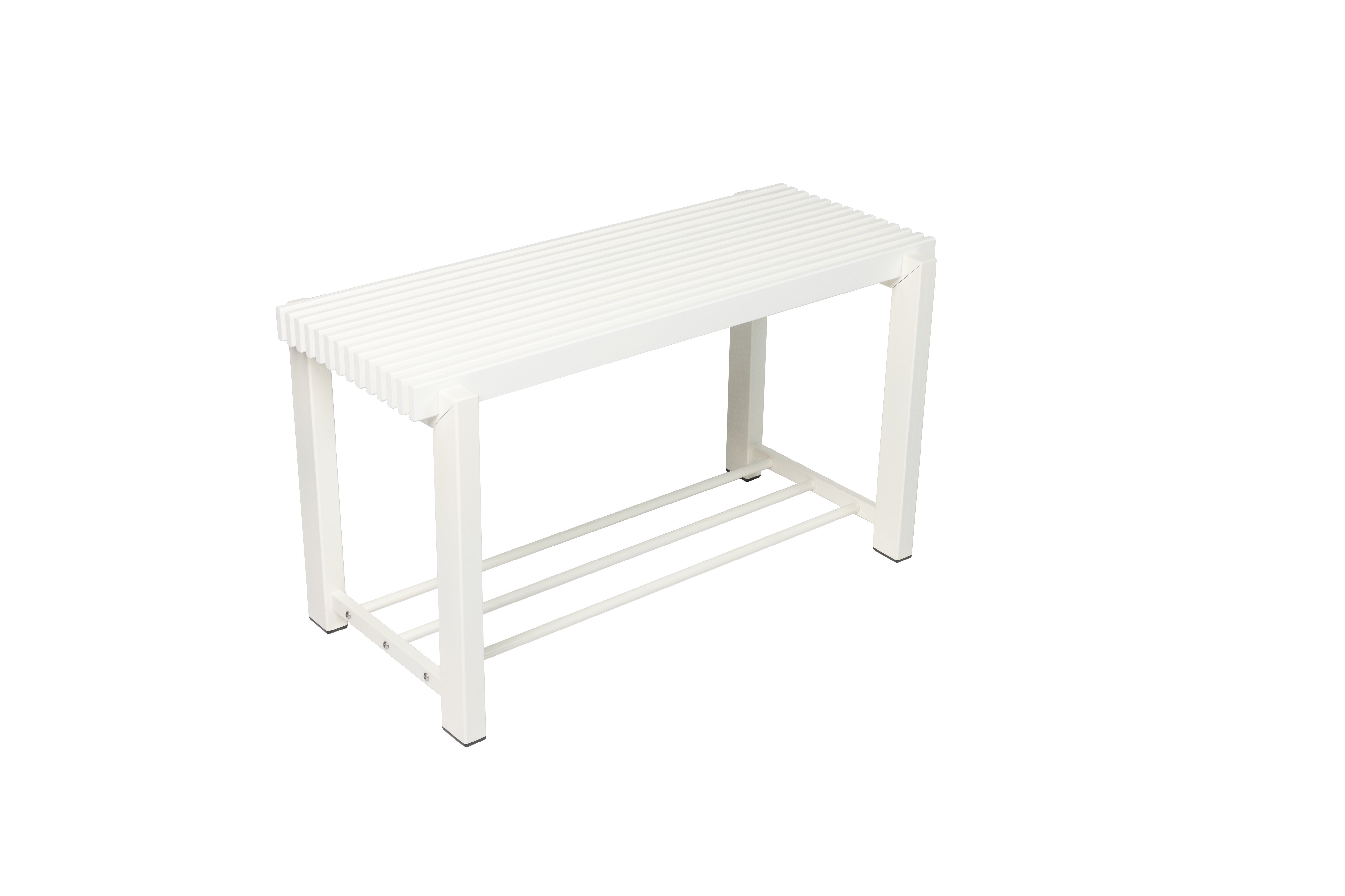 Norline bænk udgør en 2 i 1 løsning, idet bænken også rummer en hylde til opbevaring af sko eller kurve til småopbevaring. Designet er klassisk med sine lige linje og kantede look, og de massive ben samt materialerne af hvidlakeret, massivt træ og hvidlakeret stål giver bænken substans og sikrer en god kvalitet. Bænkens siddeplads består af 14 trælameller af træ, hvor mellemrummet mellem hver trælamel er med til at give designet et let og luftigt udtryk. Materialer er desuden slidstærke, således at de kan holde til mange års daglig slid. Norline bænken leveres i forskellige længder, så den passer ind i enhver entré.