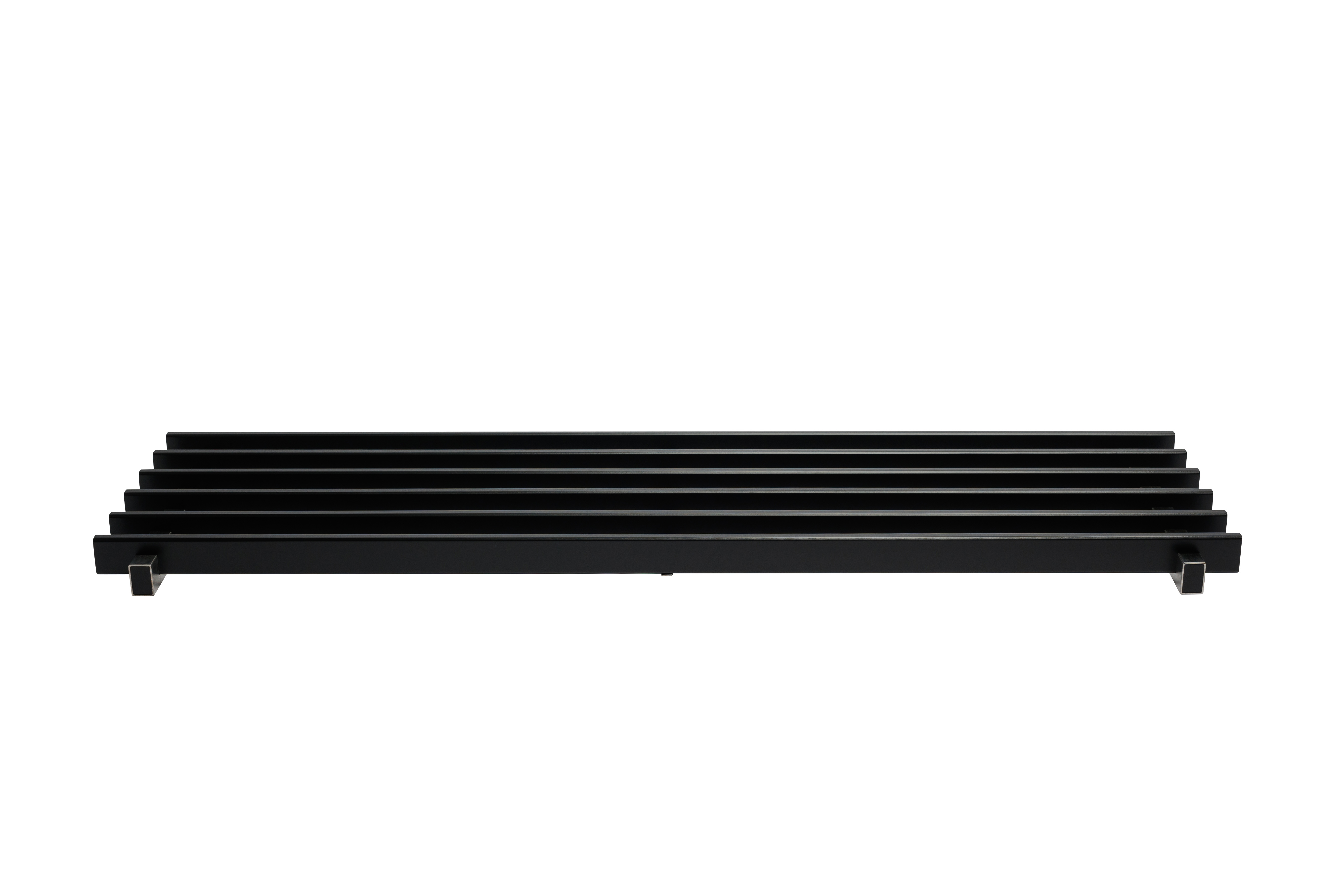 Norline hattehylde er en moderne fortolkning af den klassiske hattehylde. Møblet danner rammerne for en multifunktionel opbevaring af overtøj i entréen med sin hylde, knagerække og bøjlestang. Hattehylden består af rustfrit stål og sortlakeret, massivt træ, der sikrer et gennemført kvalitetsprodukt. De 6 massive trælameller udgør hylden, hvorpå cykelhjelme, hatte eller kurve til småopbevaring kan placeres. Herunder er knagerækken med 5 sorte træknager, der med sine elegante udskæringer former fordybninger til ophæng af jakker. Denne diskrete detalje er med til at give hattehylden karakter. På bøjlestangen er der yderligere plads til overtøj – her er det muligt at fuldende looket med Norline bøjle.