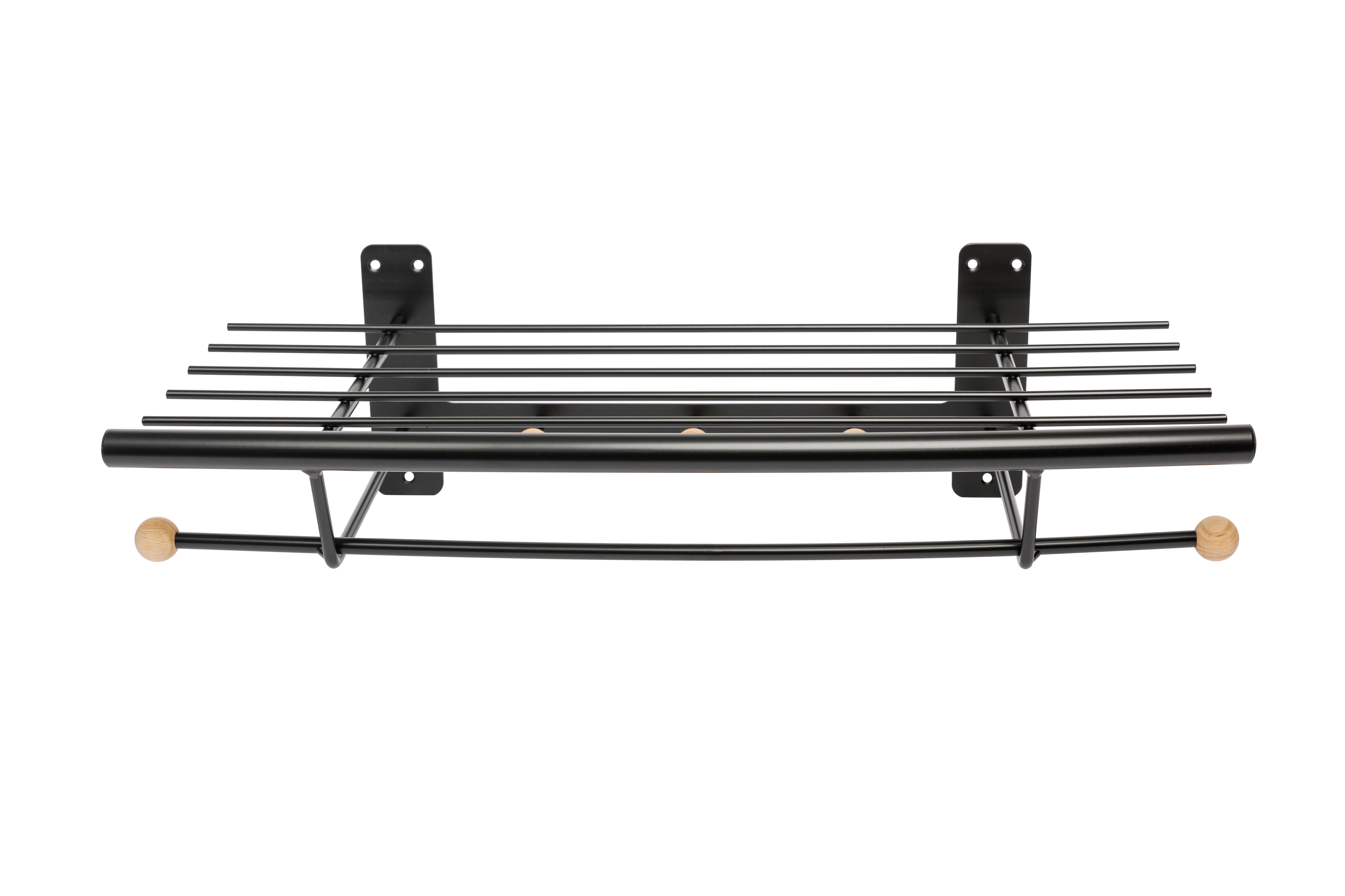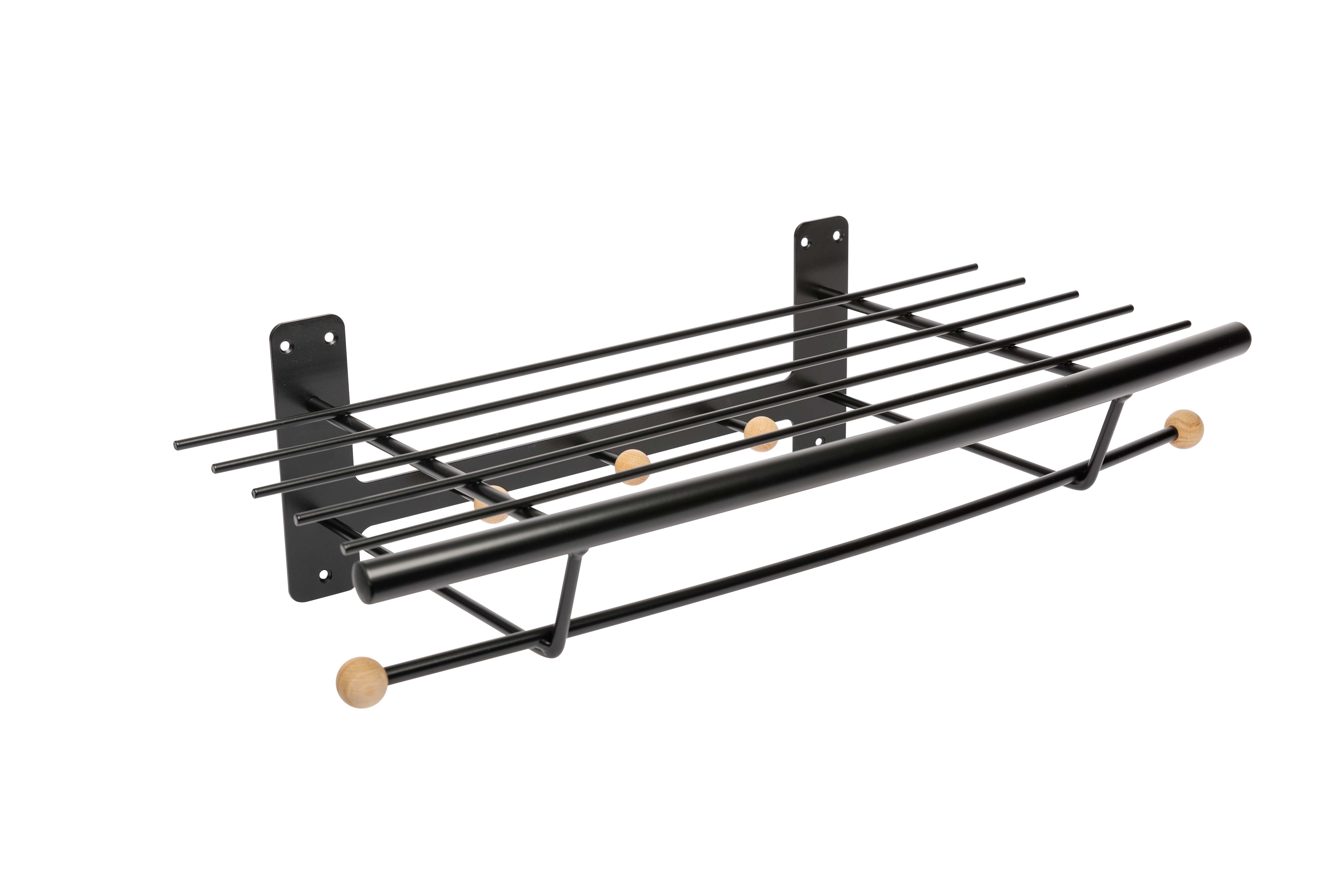 Sir James 7 hattehylde er en multifunktionel opbevaringsløsning til entréen, der gør den nemt at organisere dine jakker, tasker og andet tilbehør. Hattehylden samler tre ideelle opbevaringsmøbler i ét møbel, idet den består af en hylde, en bøjlestang og en knagerække.