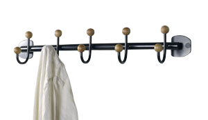 Sir James 8A knagerække er med sin enkelthed en stilsikker tilføjelse til ethvert hjem. Den sorte knagerække består af 5 knager, hvoraf hver knage har 2 knopper af massivt træ farvet i nøddetræslook, der fordobler opbevaringspladserne. Knagernes placering på det runde stål bevirker til, at knagerne kommer en smule ud fra væggen, hvilket skaber luft og dybde i designet. På knagerne kan overtøj og tilbehør hænges direkte på, men man kan også vælge at tilføje en bøjle til opbevaringsmøblet. Denne enkle knagerække kan både fungerer alene eller som et supplement til seriens andre entrémøbler – afhængig af plads og opbevaringsbehov.