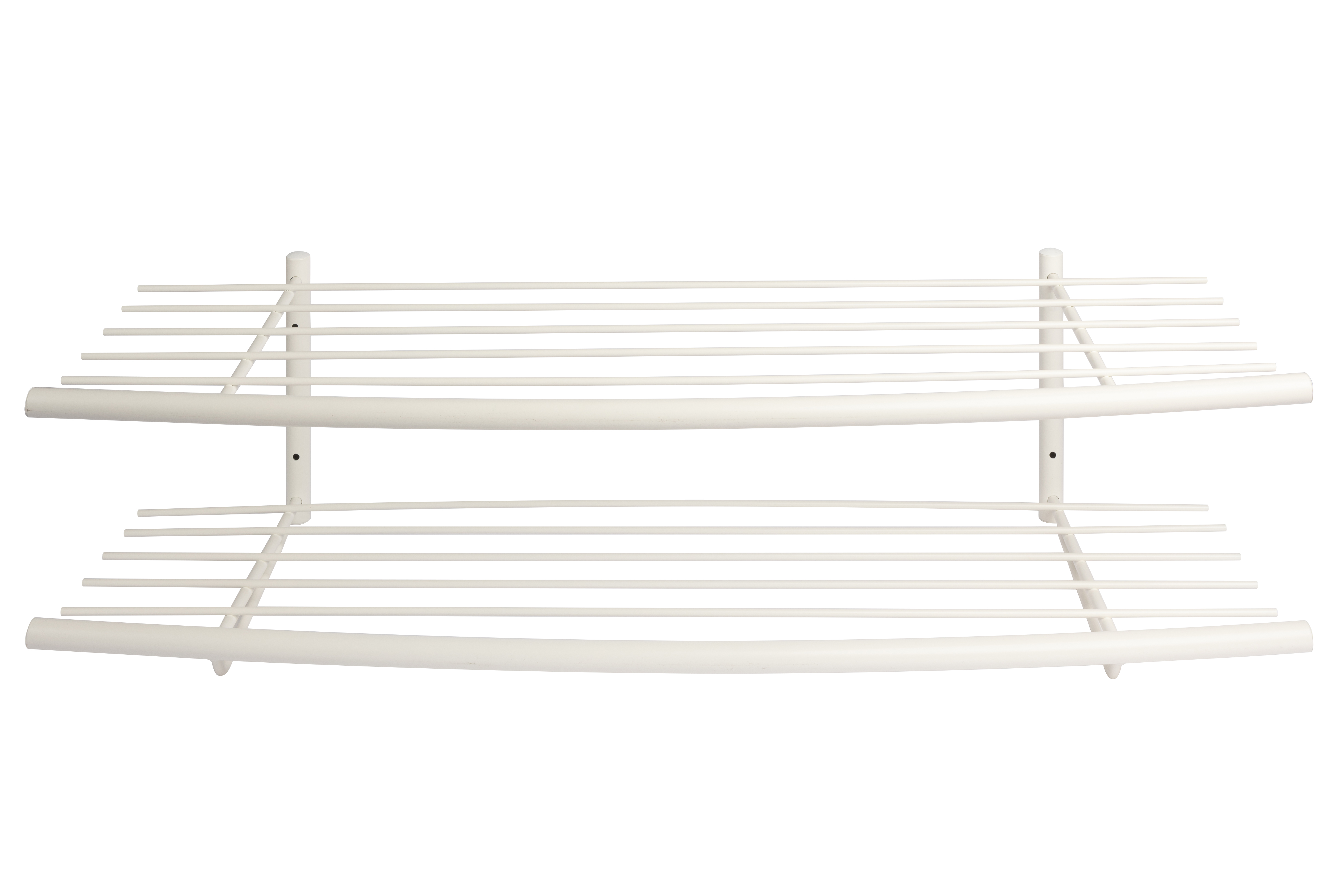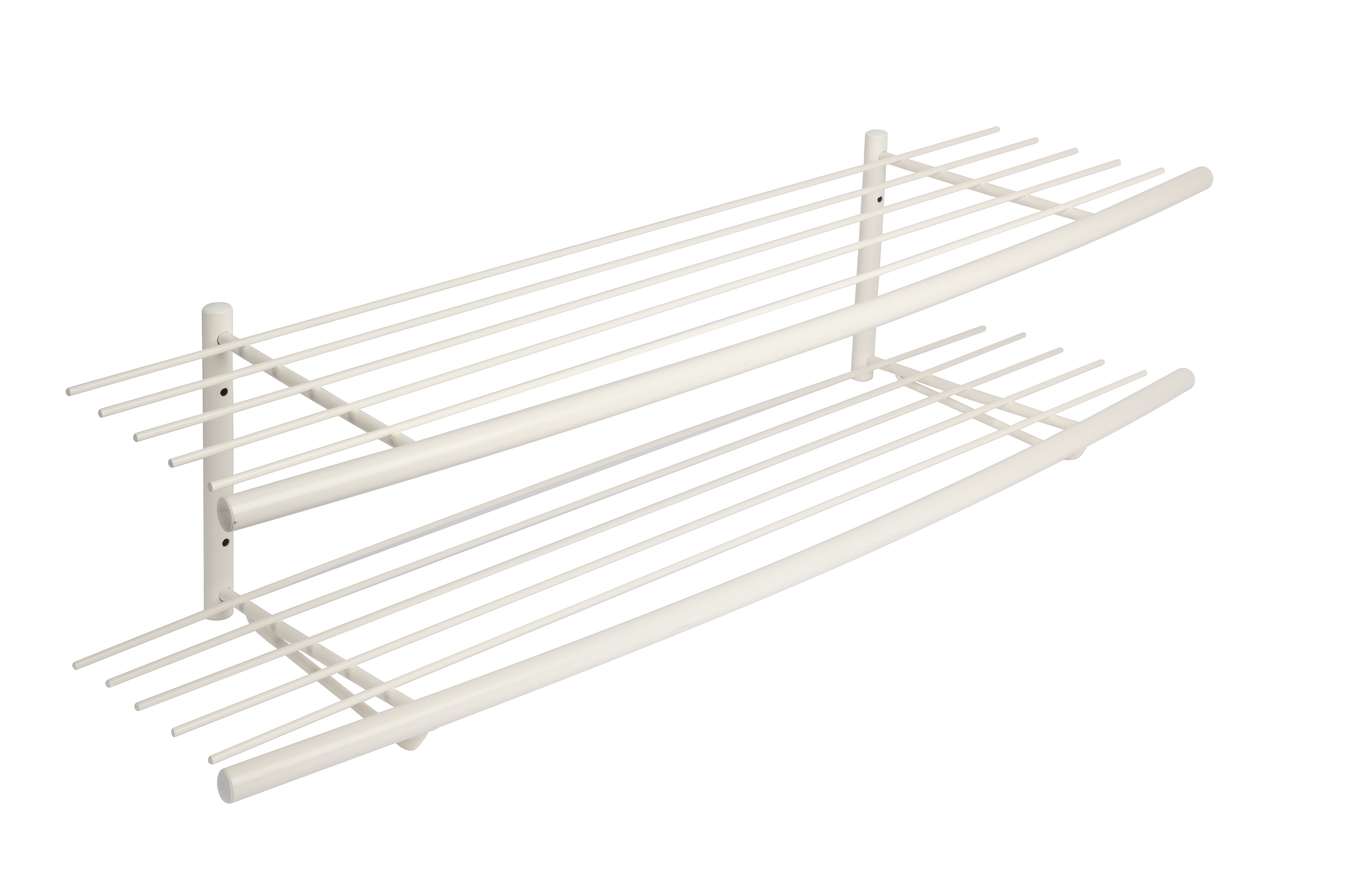 Sir James skohylde med 2 hylder er et let og elegant møbel til opbevaring af fodtøj. Alt efter behov kan skohylden placeres på gulvet eller monteres på væggen, hvilket gør den fleksibel at implementere i entréindretningen. Den hvide hylde er praktisk, da det er slidstærkt og nemt at rengøre. Designet er enkelt og let, idet 5 spinkle stænger tilsammen udgør hver enkelt hylde, således at man undgår et kompakt og tungt møbel, der fylder i entréen. Hyldernes fronter består af et mere markant stel, der er let afbøjet, således at skohylden får et blødt udtryk. Sir James skohylde skaber altså luft i entréen og tilbyder gode opbevaringsmuligheder med sine 2 hylder.