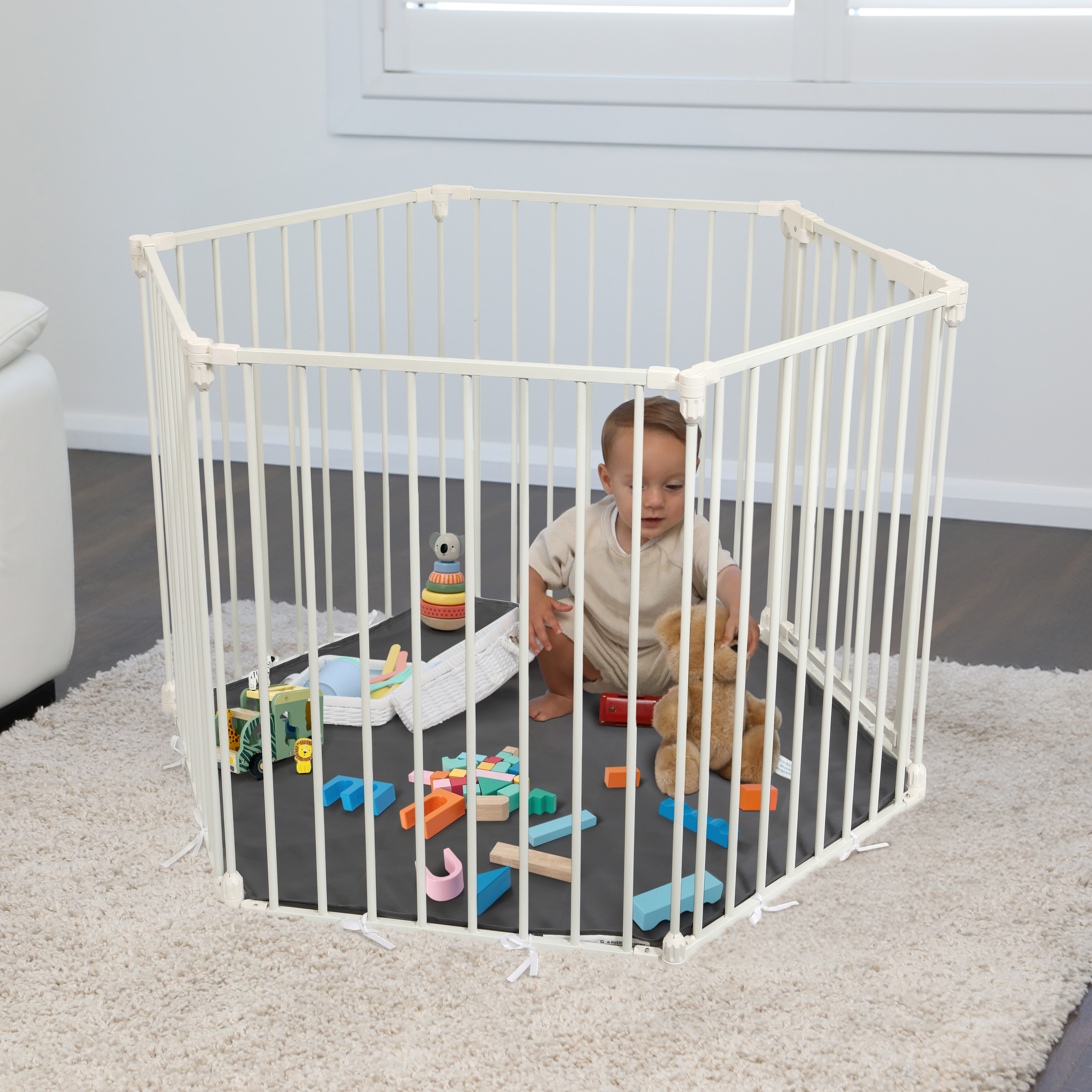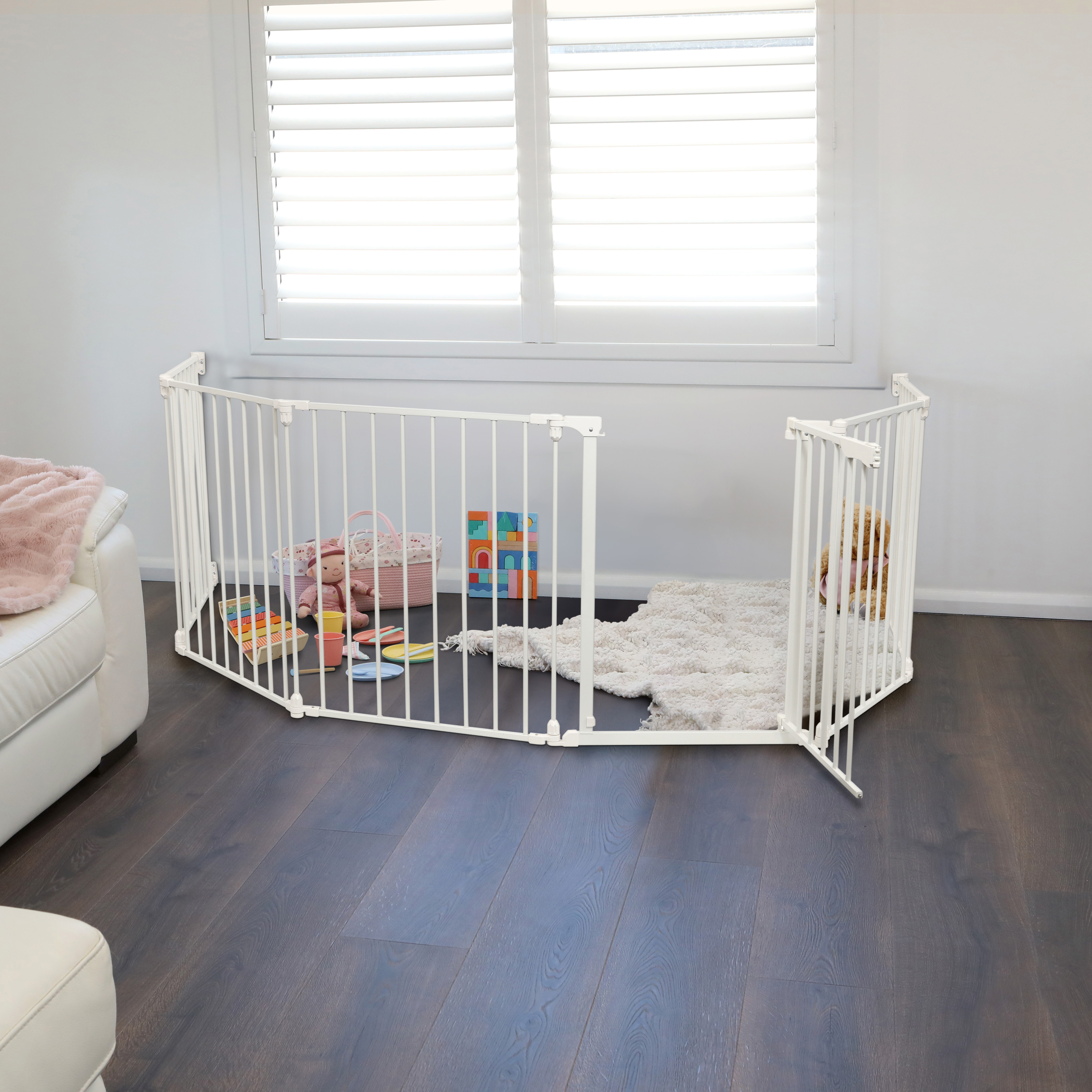 Dreambaby Discovery 3-i-1 er en alsidig og ekstra stor løsning, der fungerer som legehave, rumdeler og pejsesikring i én og samme enhed. Med 5 justerbare paneler, inklusive et praktisk dørpanel med stay-open-funktion og envejsstopper, kan du nemt tilpasse opsætningen til dit hjem. De medfølgende vægbeslag sikrer en stabil montering, og systemet passer til åbninger op til 3,5 meter. Perfekt til at skabe sikre zoner for børn i større rum eller omkring brændeovne og pejse.