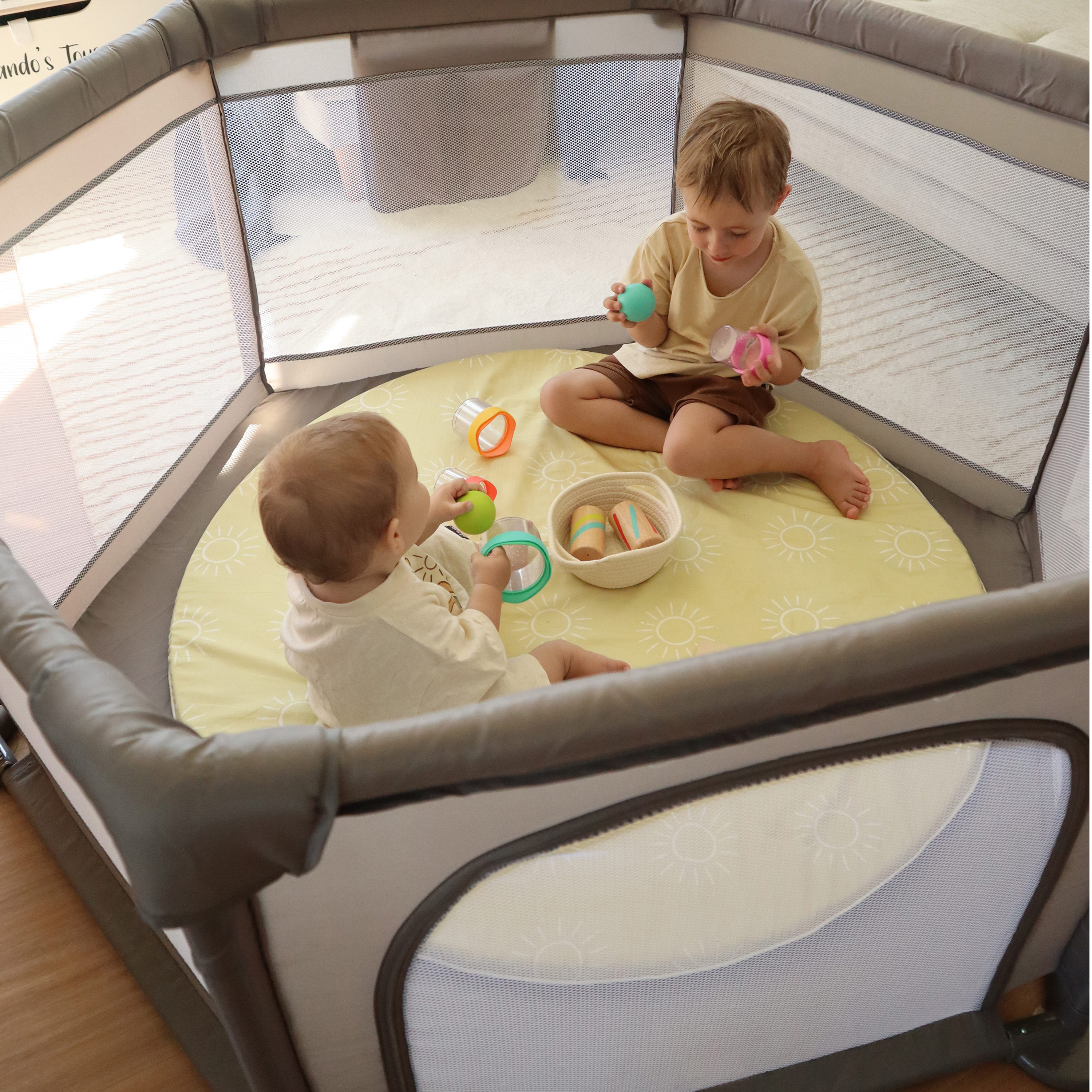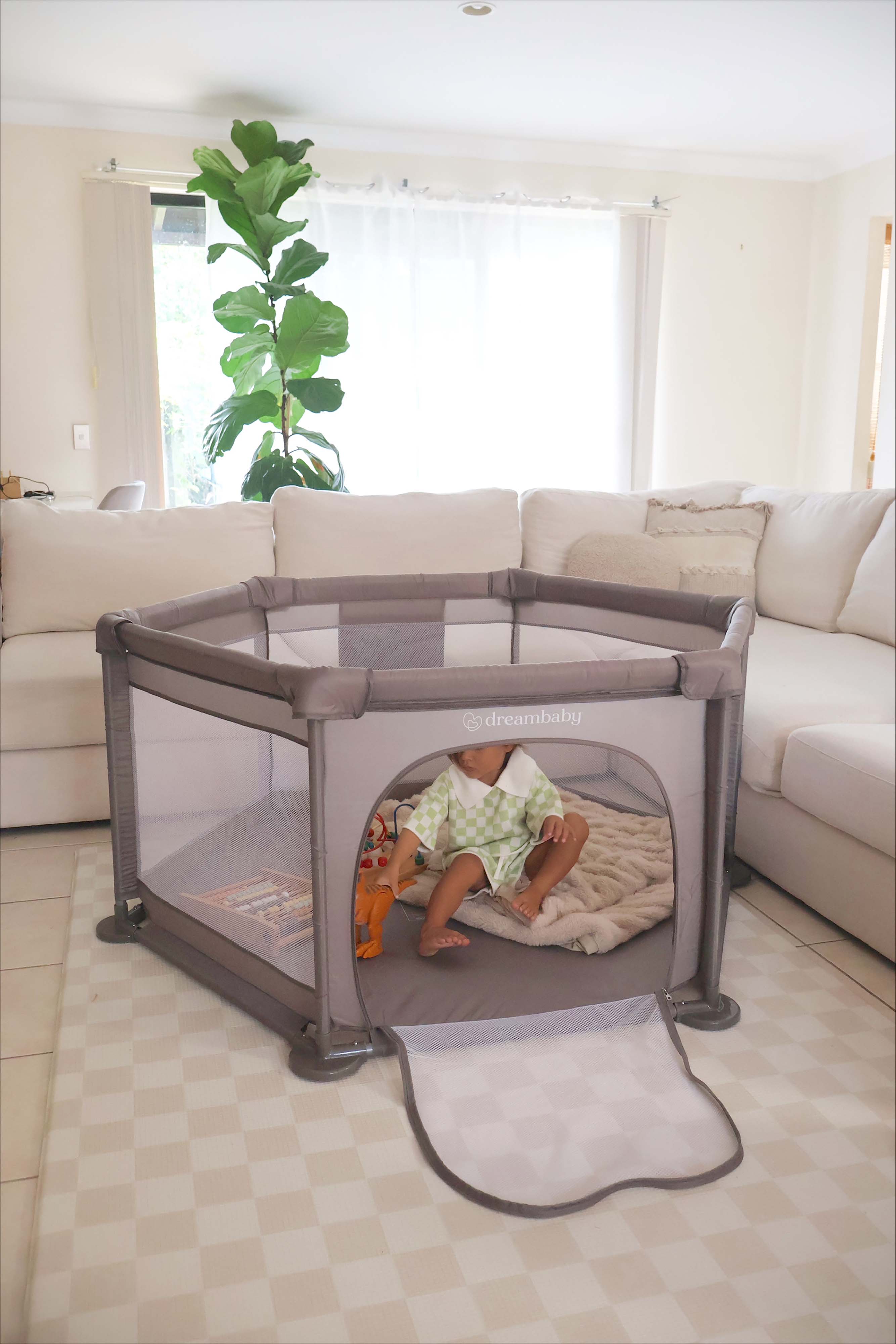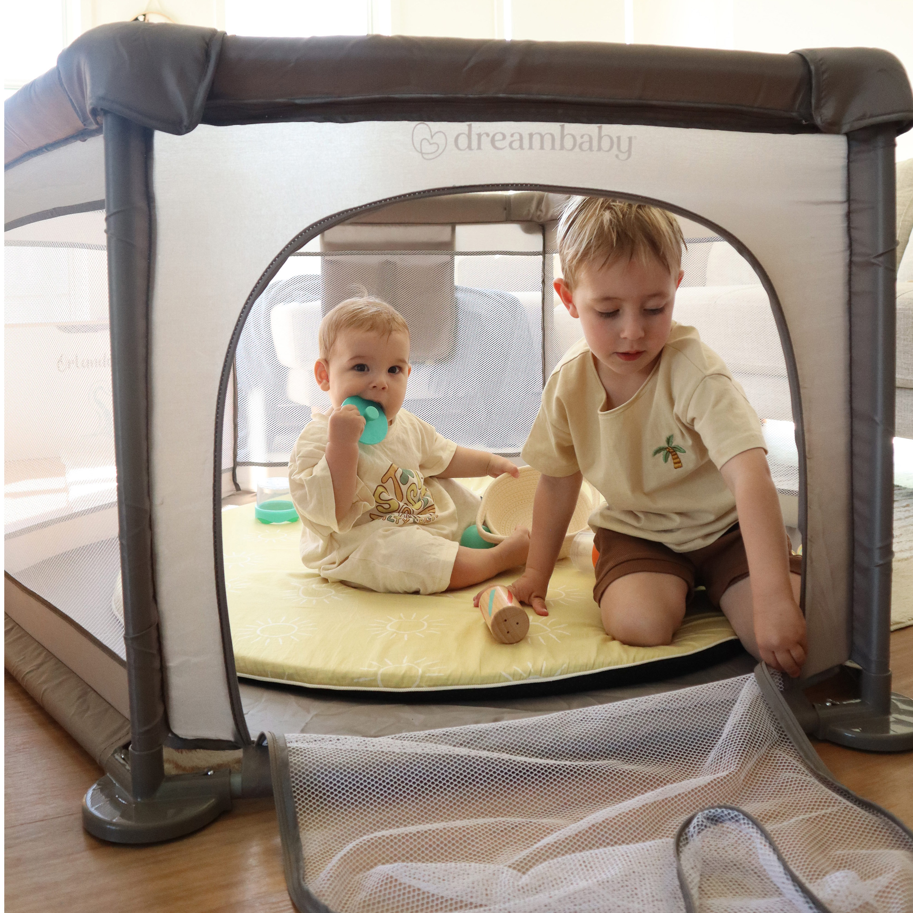 Skab et trygt og sikkert legeområde for dit barn med DREAMBABY Kravlegård. Denne robuste og rummelige kravlegård giver dit barn masser af plads til at udforske og lege, samtidig med at den holder dem sikkert adskilt fra farlige områder i hjemmet. Den stilfulde grå farve passer ind i enhver indretning, og det stærke net gør det muligt for dig at holde øje med dit barn, mens de er i kravlegården. Let at samle og transportere, hvilket gør den perfekt til både hjemmebrug og på farten. Et uundværligt tilbehør til forældre, der ønsker at skabe et sikkert og komfortabelt område til deres lille én.