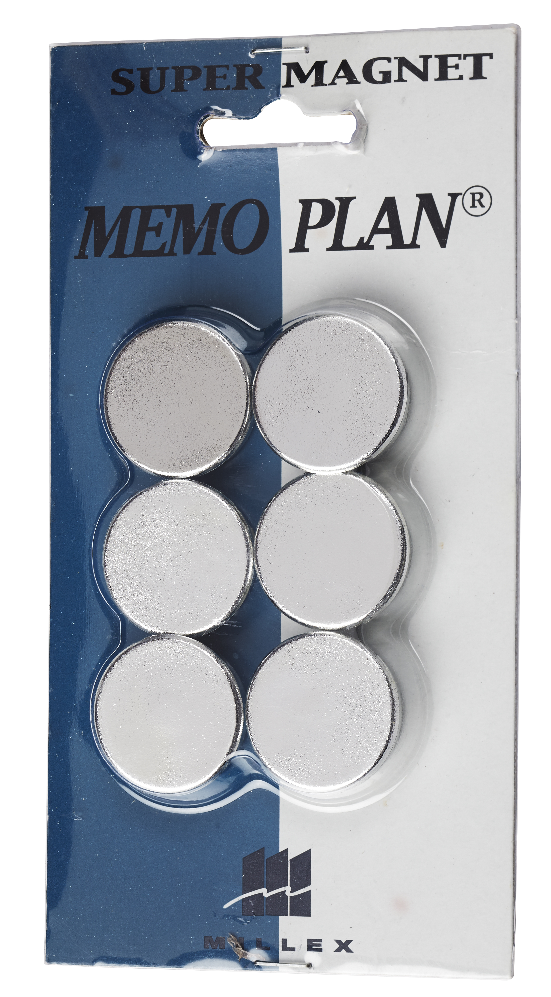 Millex magneter i Ø25 mm leveres i en praktisk mappe med seks stykker. Disse magneter tilbyder en fremragende styrke, der gør dem ideelle til at holde fast på dine noter, billeder og andre småting.