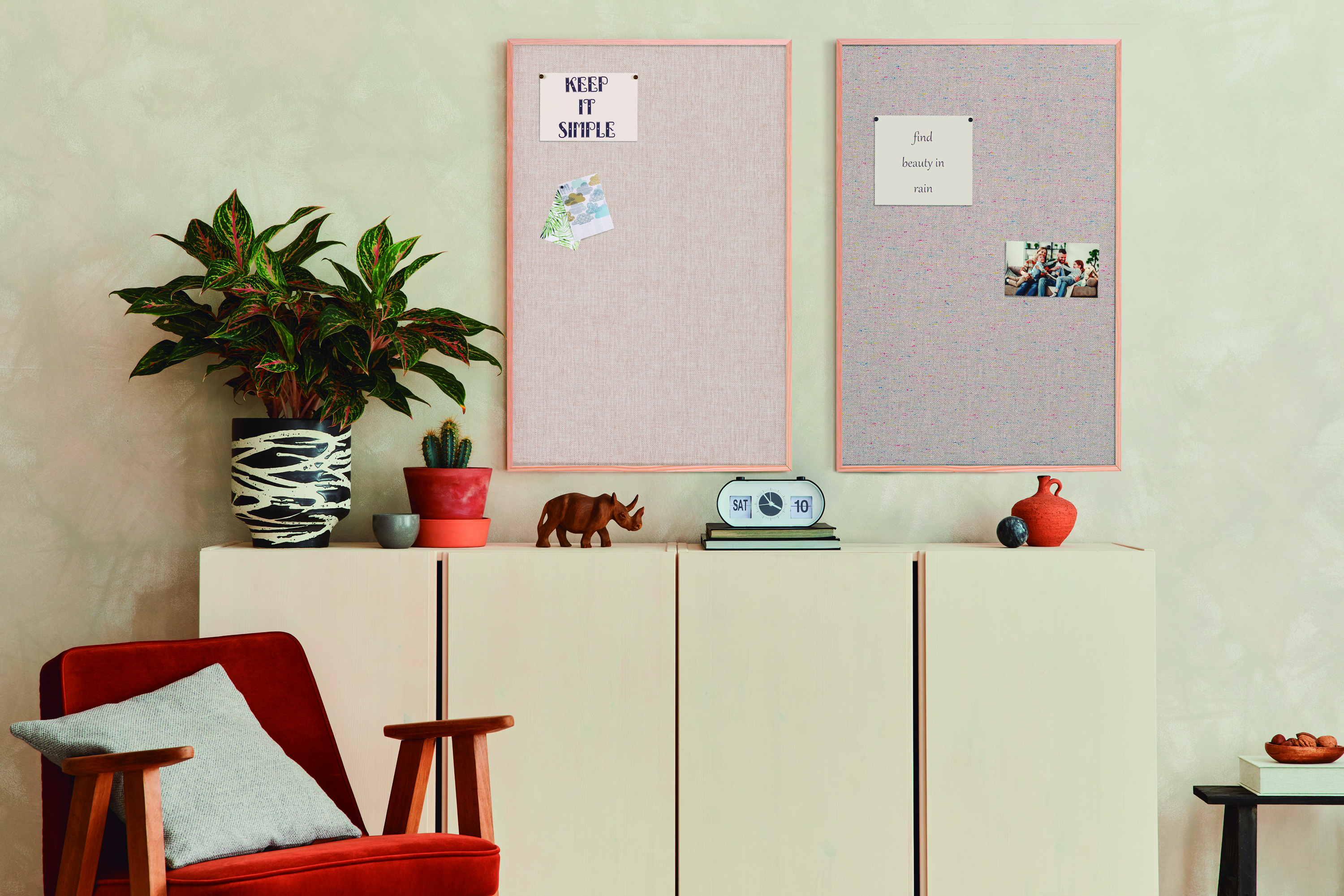 Millex opslagstavle i stof er den perfekte løsning til at organisere dine noter, billeder og vigtige dokumenter. Den er designet til at blive brugt med knappenåle og trykstifter, hvilket gør det nemt at fastgøre ting på en sikker og praktisk måde.