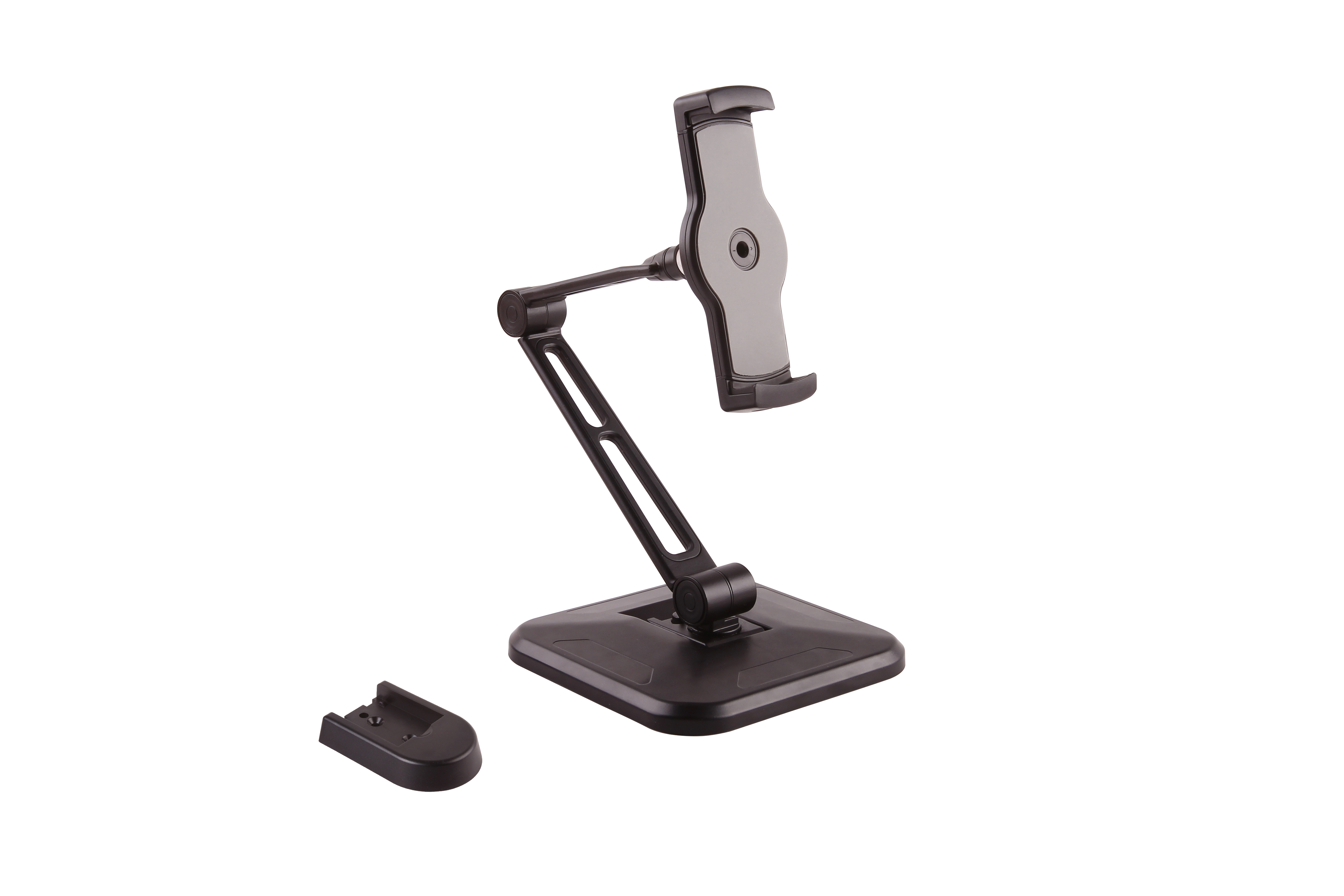 Denne fritstående tablet- og mobilholder er den ideelle løsning til dig, der ønsker at have en skærm inden for rækkevidde uden at bruge hænderne. Den er designet til at stå stabilt på bordet og kan justeres, så den passer til både telefoner og tablets i alle størrelser.