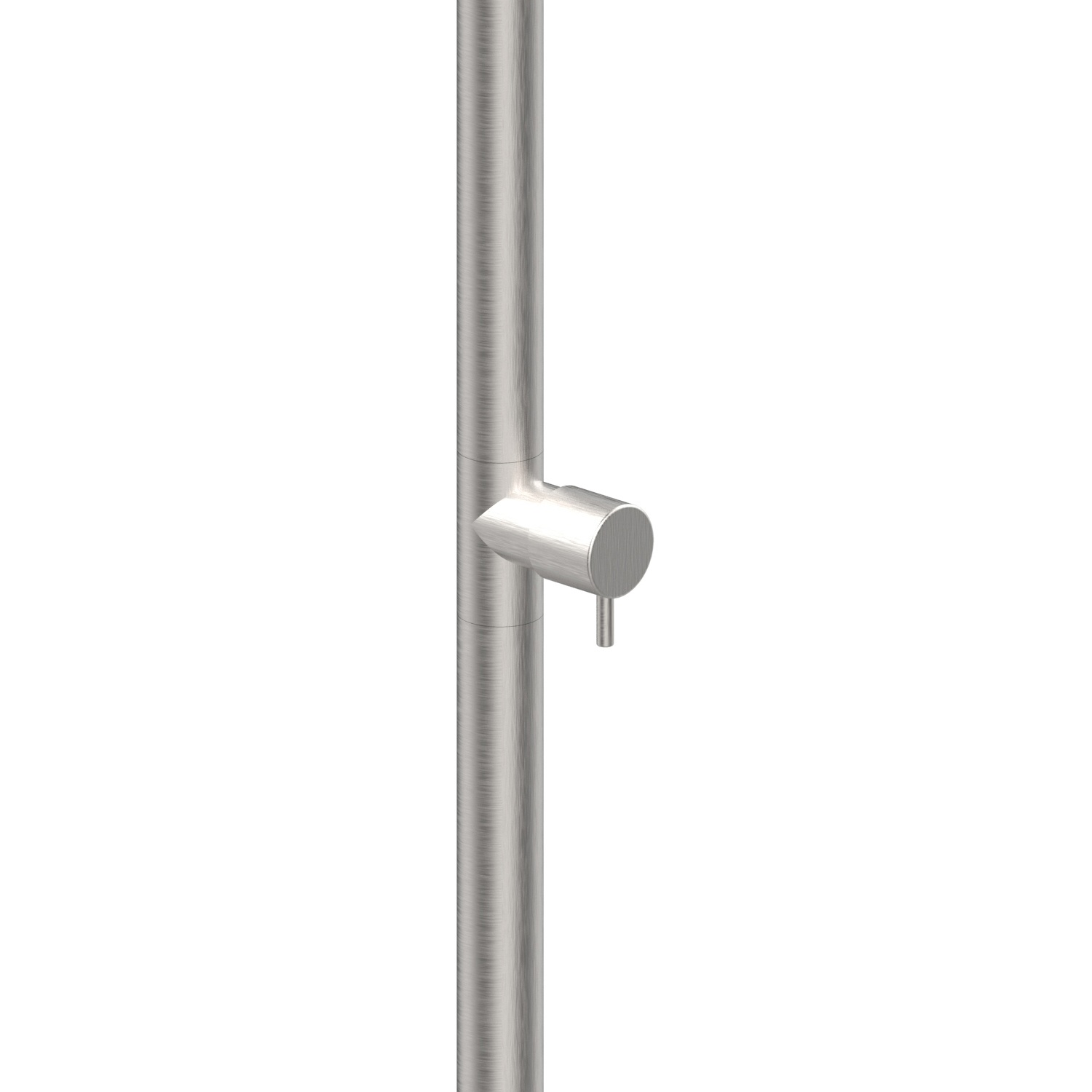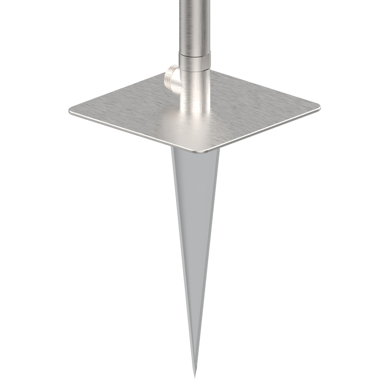Enkel og stilet udendørs bruser fremstillet af rustfrit stål. Dette produkt er designet til at kunne anvendes året rundt, og tilkobling til en vandslange muliggør en hurtig og let installation. Bruserhovedet har en diameter på 80 mm, og et jordspyd til montering medfølger.